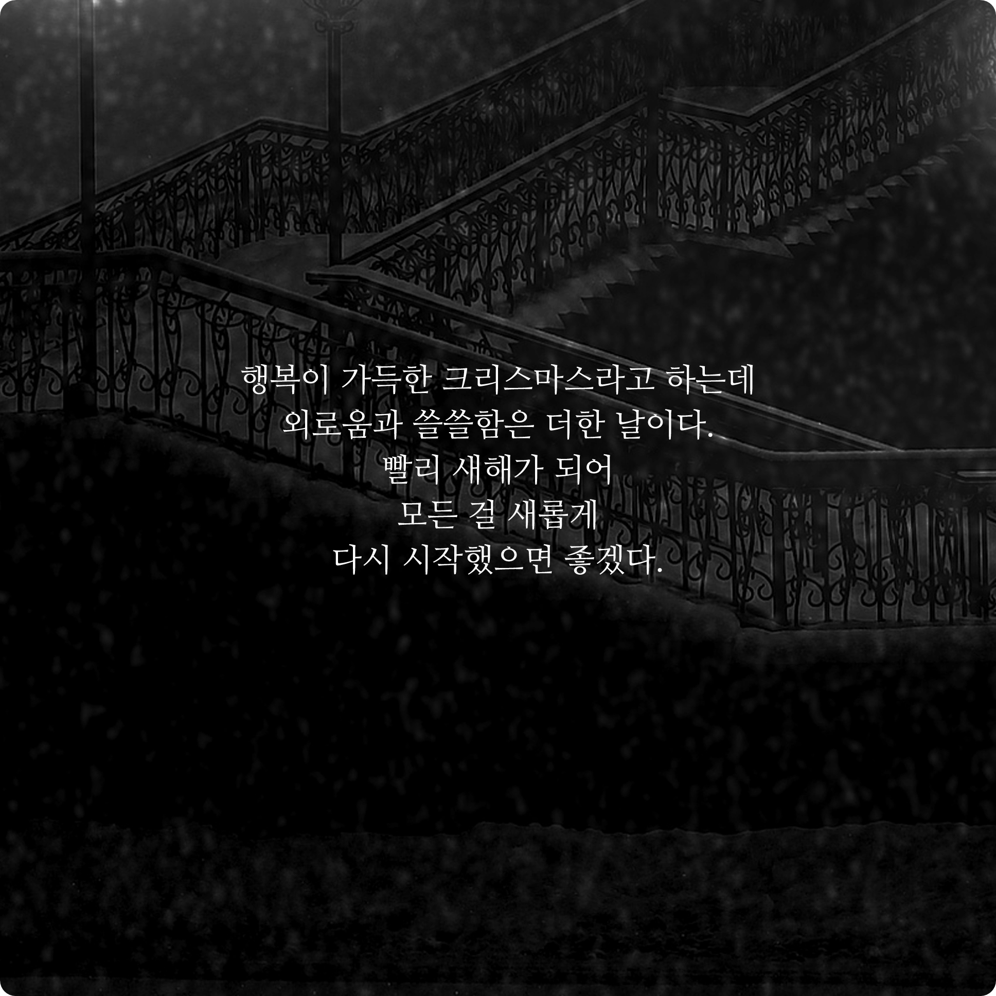 사람들은 모두 행복하고 즐거운 것 같아요. 저는 그렇지 않은데 말이죠.. 어쩌면 사람들이 모두 행복하고 즐거울때 제 외로움과 쓸쓸함 절망감은 더해가는 것 같습니다. 어쩌면 신은 나에게 새롭게 시작할 수 있도록 새로운 마음가짐을 품고 다시 일어서라는 강력한 메세지를 전해주기 위해 어김없이 새로운 새해를 선물하는 것은 아닐까요? 생각해보면 정답은 내 안에 있어요. 해는 기쁠때나 슬플때나 매일 다시 뜨곤 하죠. 어쩌면 특별한 계기나 상황을 바라기보다는 조금 더 빨리 내가 강한 마음을 먹고 다시 일어서야 하는 것 같습니다.
