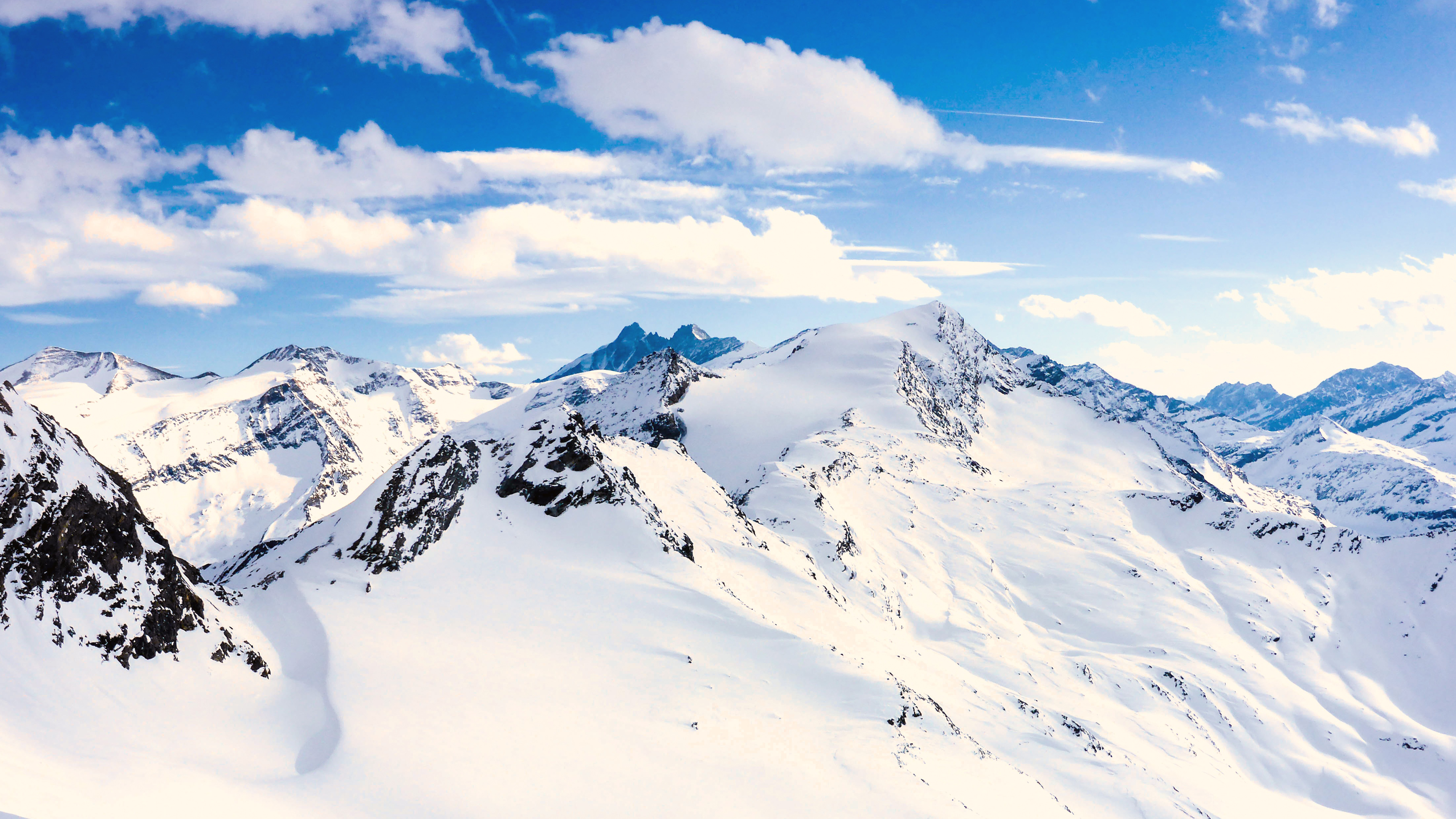 첫번째 감상할 이미지는 바로 광활한 눈 풍경이 가득한 사진입니다. 푸른 하늘과 함께 설경이 펼쳐져 있는 산의 모습이구요. 정상에서 담았기에 사방이 온통 눈으로 뒤덮인 여러 산들의 모습입니다.
