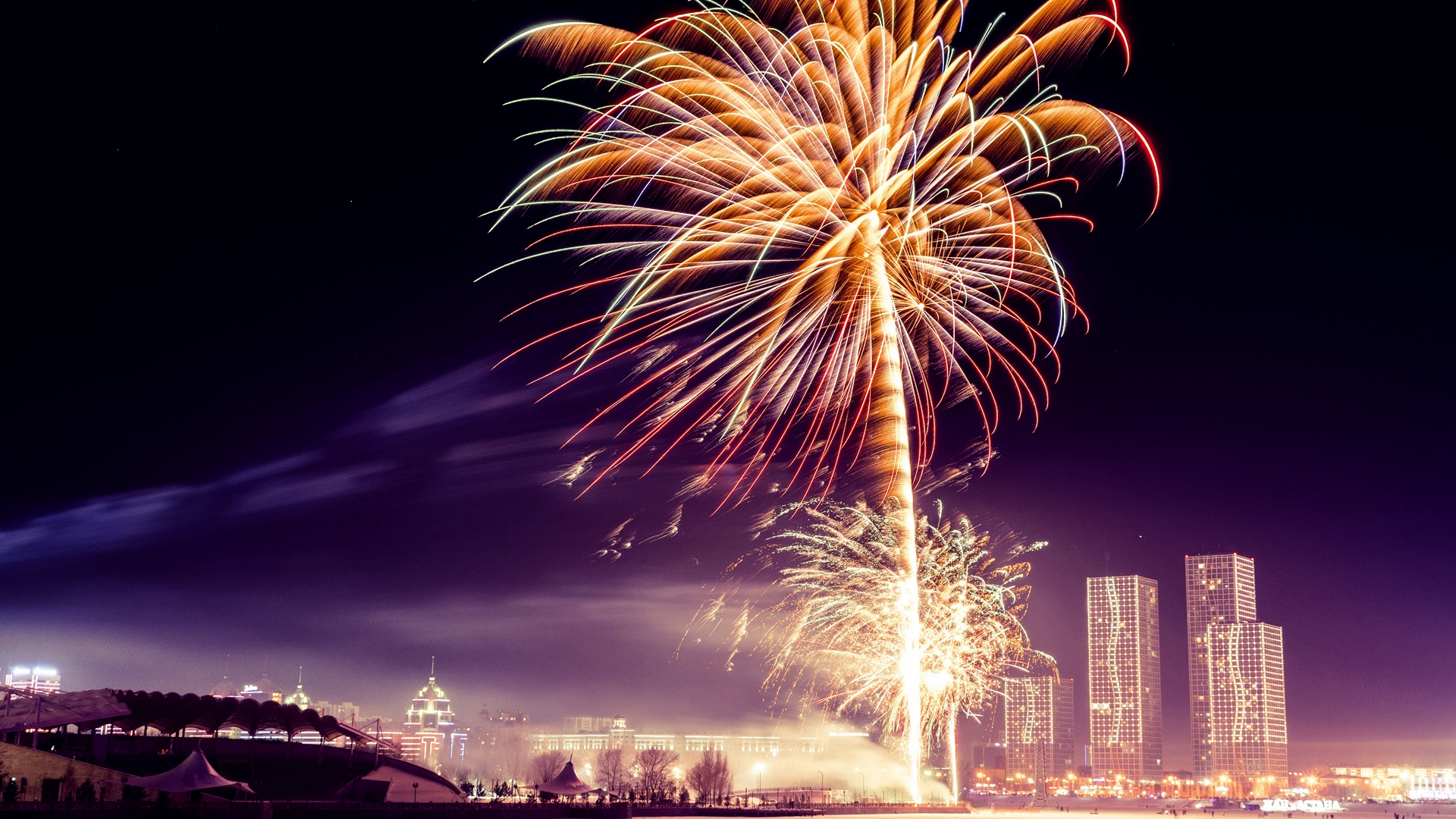 이런 폭죽이나 불꽃도 너무 예쁜것 같아요. 건물 앞으로 짙은 어둠속에서 환하게 예쁜 빛을 내고 있는 예쁜 폭죽의 모습이고요.