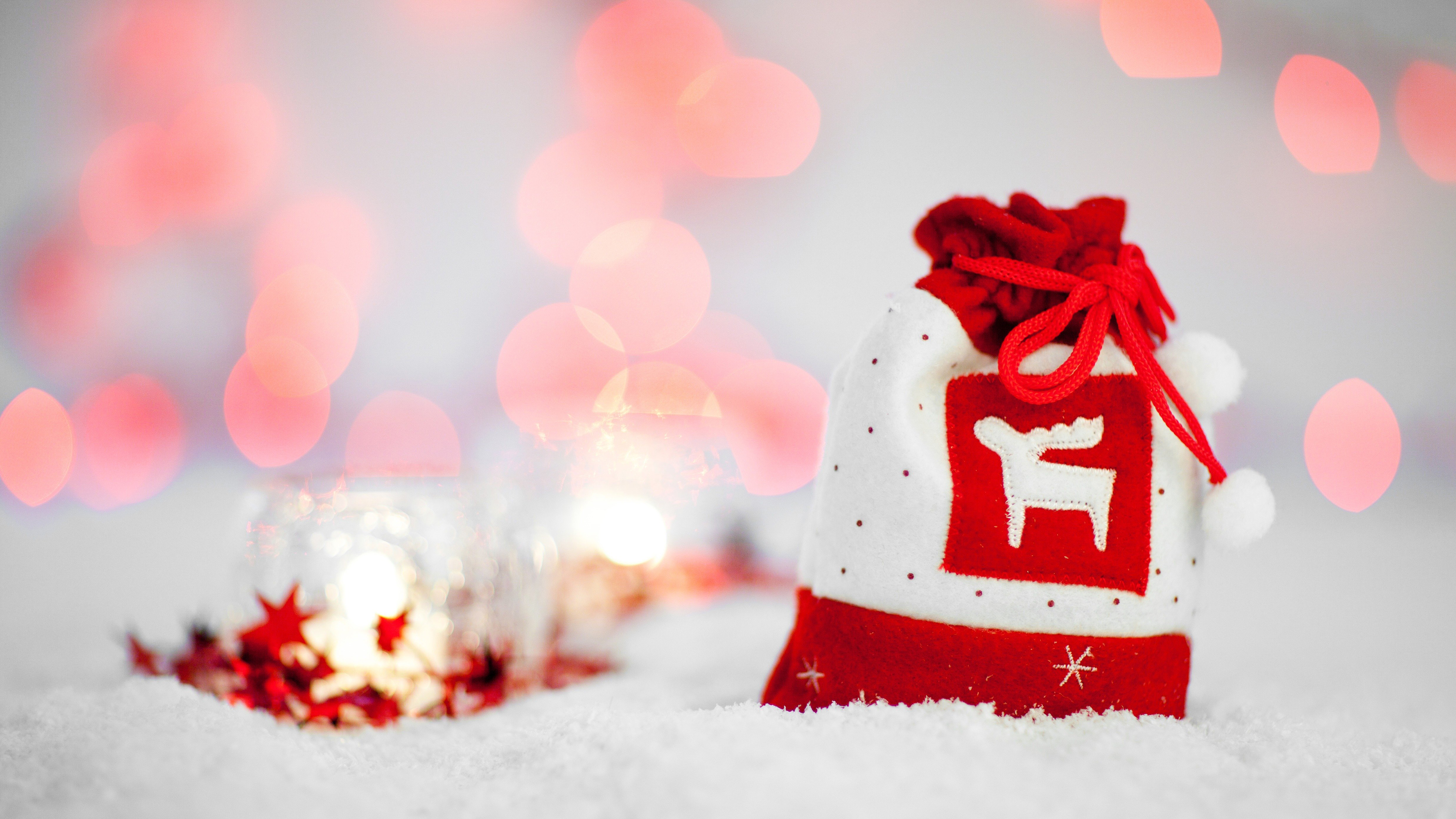 다섯번째 배경화면 테마는 크리스마스 선물과 장식 또는 다양한 사물을 가까이서 담은 사진입니다. 빨간색으로 루돌프 모양이 새겨져 있는 선물 주머니가 오른쪽에 있구요. 그 왼쪽 저 멀리에는 유리병에 담겨있는 듯한 별 모양의 장식들이 모여져 있는 모습입니다. 사방으로는 크리스마스 트리에 빛을 내는 장식처럼 아웃포커스로 빨간 빛들이 희미하게 보이고 있는 사진입니다.