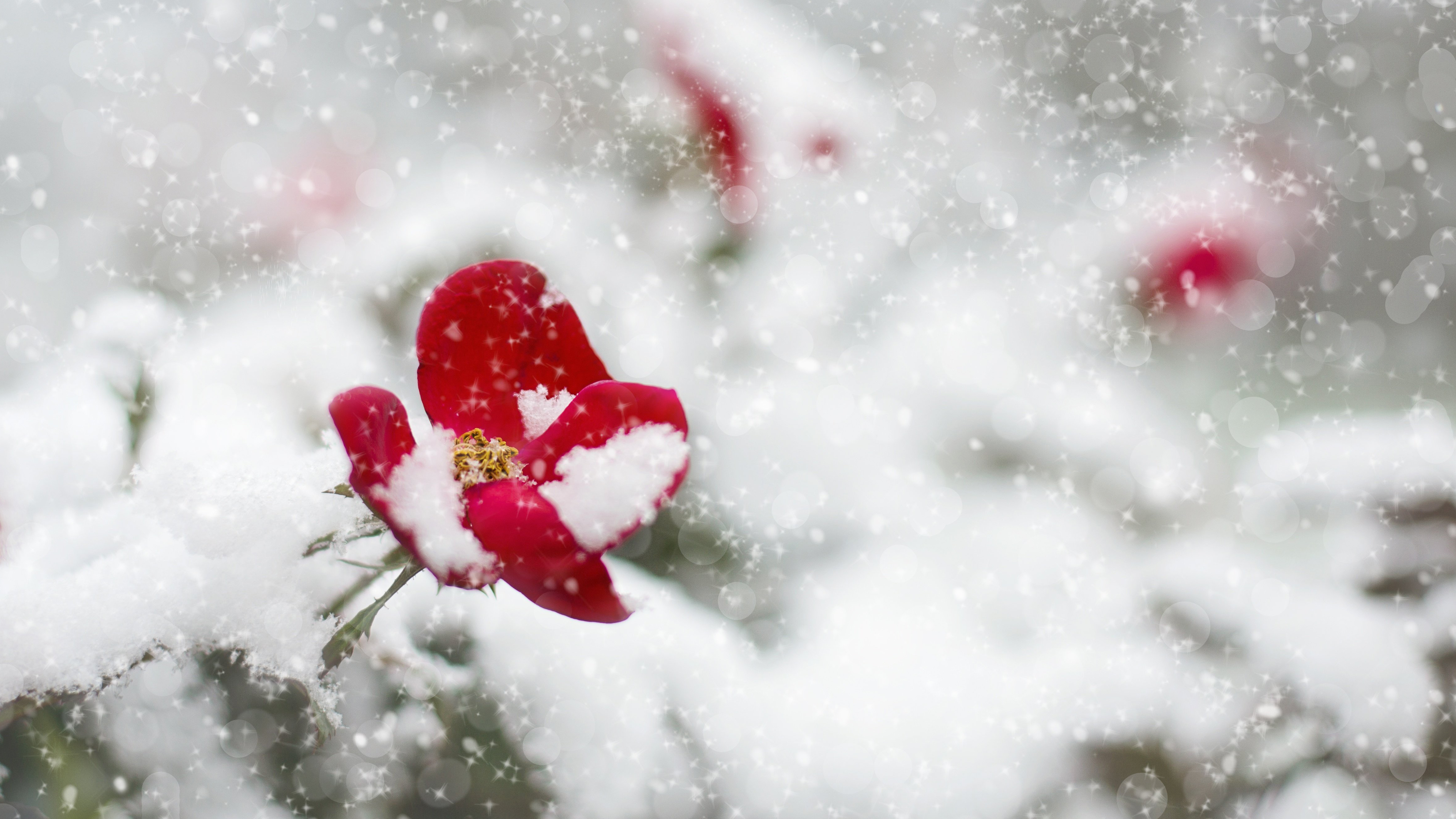 눈내리는 추운 겨울에도 빨각 꽃이 예쁘게 펴 있네요. 눈이 소복하게 쌓여있는 모습이 우리의 겨울감성을 더욱 자극시키는 것 같습니다.