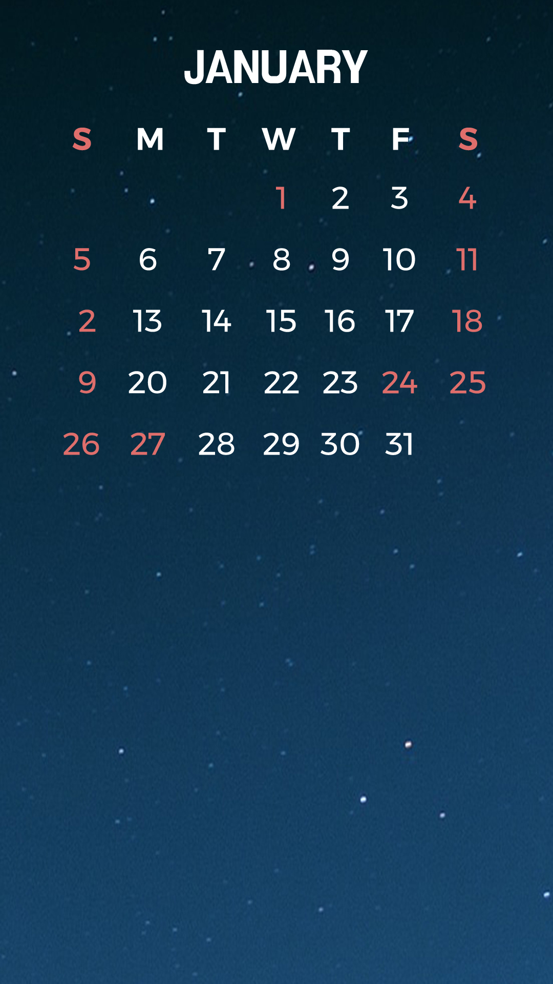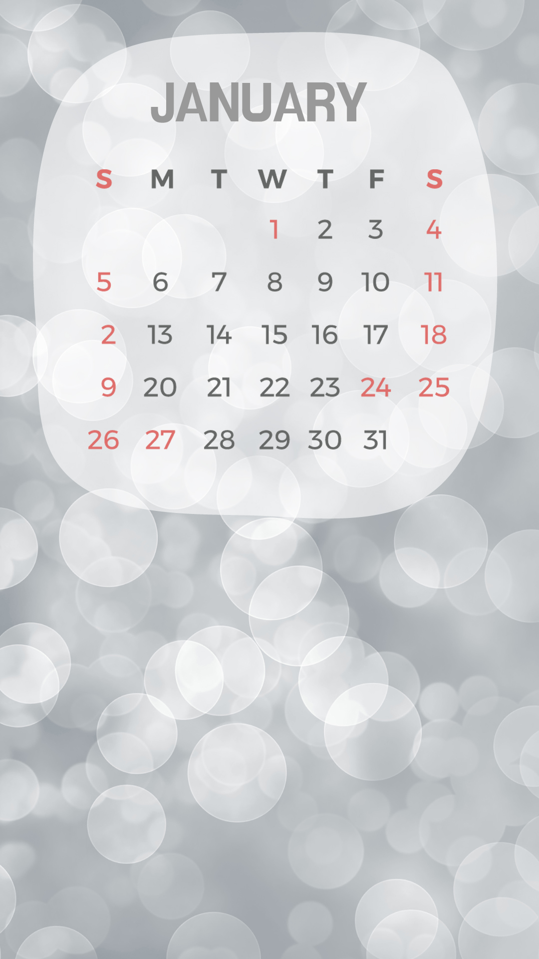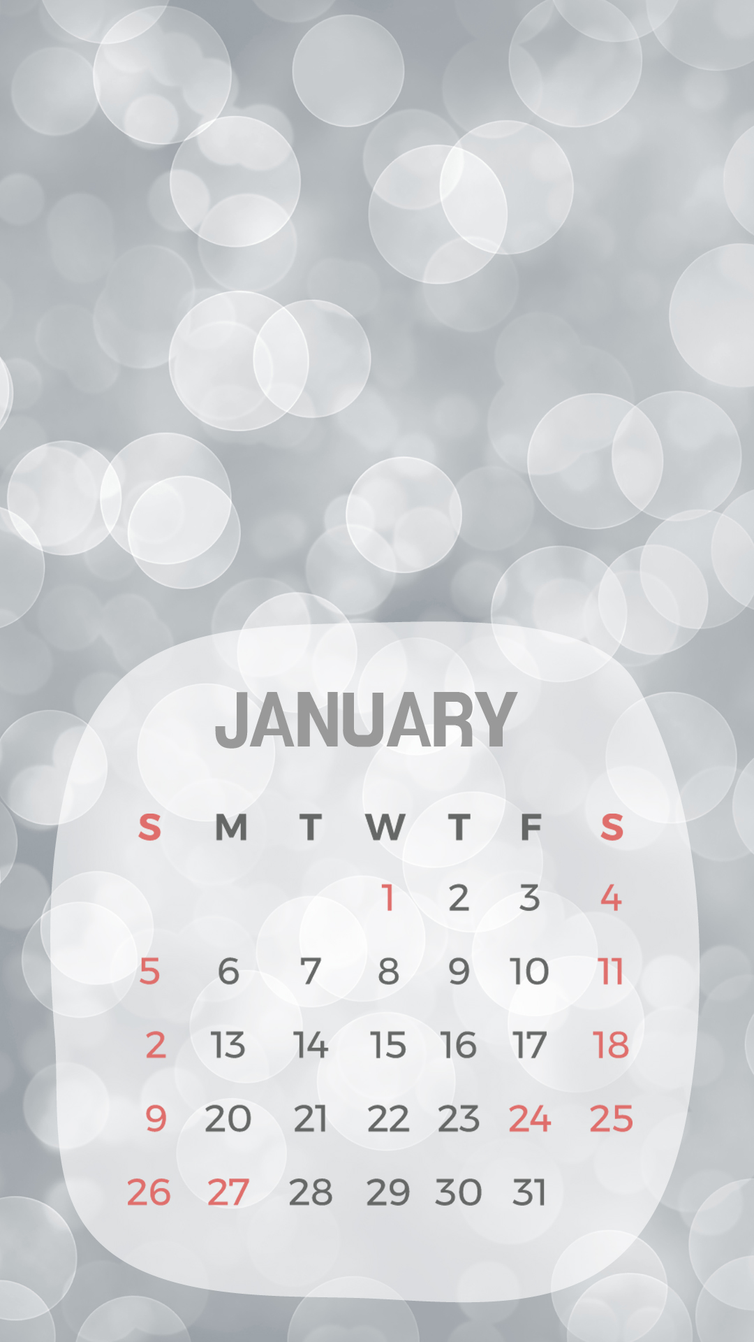 특정한 대상물이나 상징물 또는 사물이 없어도 이런 눈을 상징하는 예쁜 배경만 있는 것도 깔끔한 것 같습니다. 회색의 배경에 동그란 눈들이 마치 하나의 빛처럼 아웃포커스로 표현이 된 것 같은 느낌을 전해주는 바탕화면입니다. 핸드폰용 으로는 총 세 개의 각각 상단과 중간 그리고 하단에 달력의 위치를 배치해봤습니다.