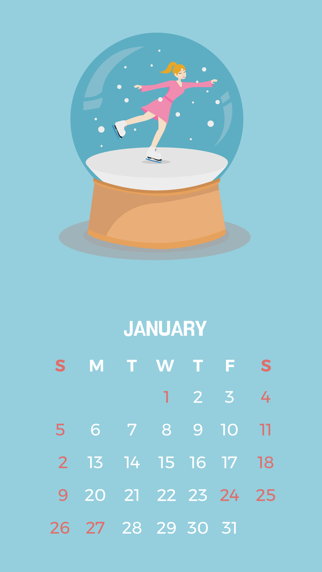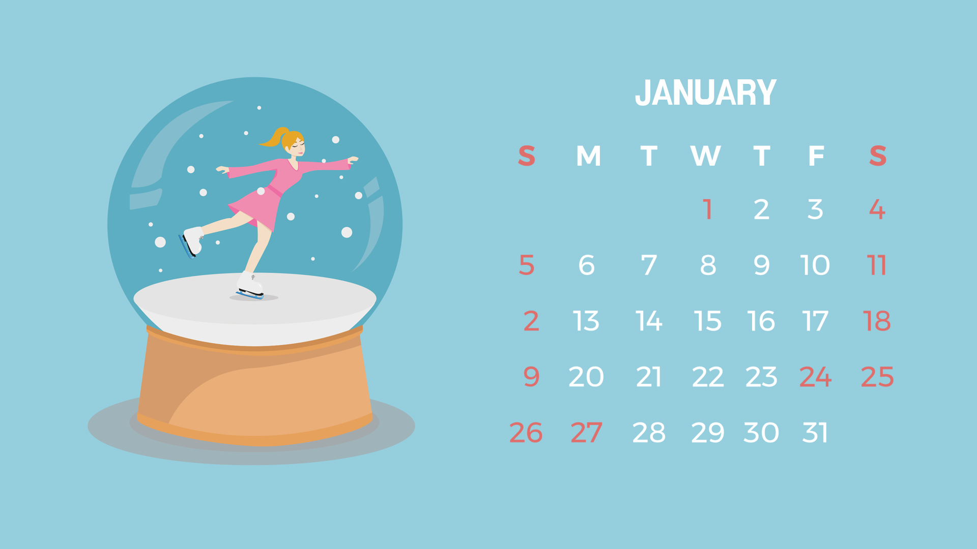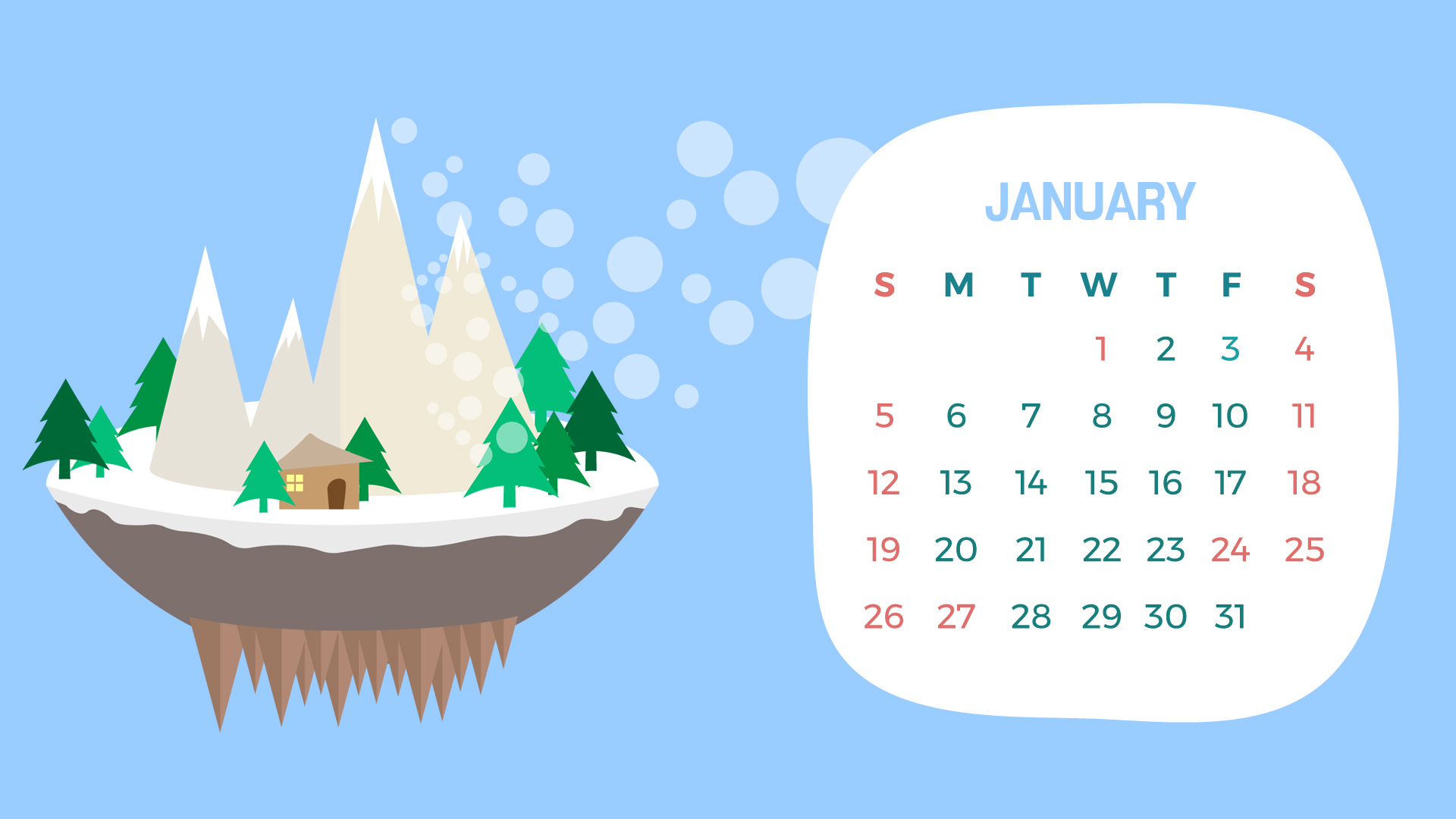 이번에는 눈사람 달력입니다. 파란 하늘에 눈이 흩날리고 있으며 빨간색 목도리와 초록색 털 모자를 하고 있는 예쁜 눈사람의 캐릭터가 그려져 있는 배경화면입니다. 아무래도 1월부터 3월까지는 겨울에 해당이 되기 때문에 이런 눈과 관련된 캐릭터나 풍경을 넣는 것도 1월 달력으로써 적합합니다.