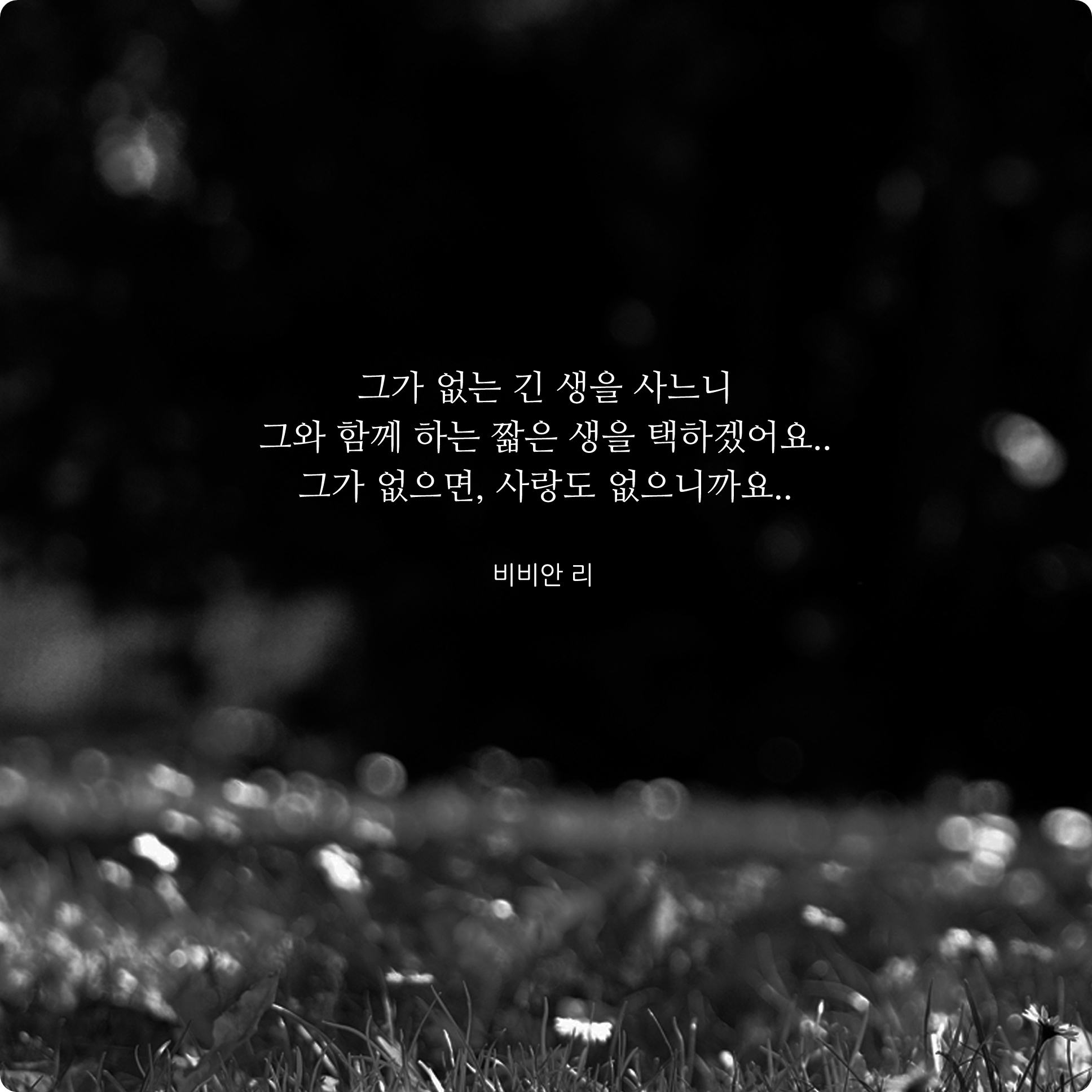 그가 없는 긴 생을 사느니 그와 함께 하는 짧은 생을 택하겠어요. 그가 없으면, 사랑도 없으니까요.