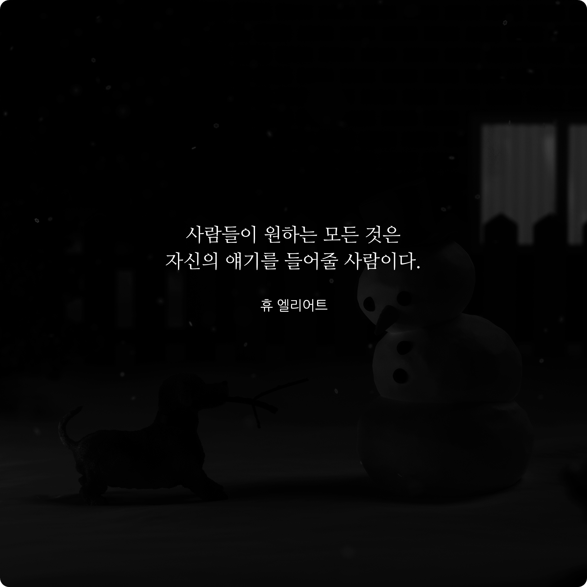 사람들은 모두 하나같이 자신의 얘기를 들어줄 사람이 필요로 하죠. 그래서 친구의 고충을 귀담아들어주기도 하고 어떤 사람의 아픔을 같이 아파하며 위로해주기도 하죠. 깊은 관계를 유지하는 것도 이러한 원리를 잘 터득한다면 좋은 인연을 만드는데에도 큰 도움이 되지 않을까요?