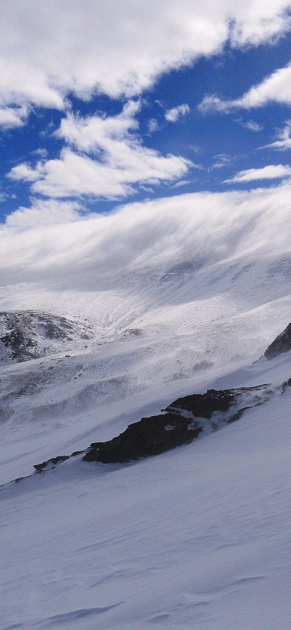 겨울 배경화면도 너무 밝은 하얀색이 아니라 이렇게 짙은 컬러와 어우러졌을 때 사진의 포인트가 살아나면서 더욱더 멋진 풍경을 전해주는 것 같습니다. 하늘에는 구름이 가득하고 하얀 눈이 뒤덮인 거친 산맥과 함께 지면으로는 물이 얼은 듯한 자연 경관입니다.