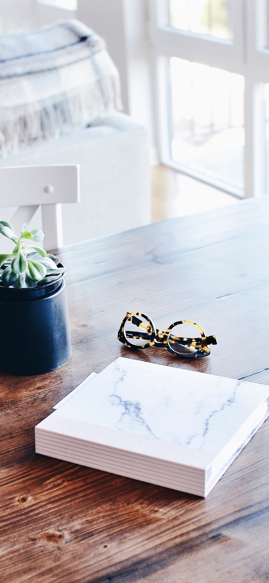 이번에는 소박하게 일상의 모습에서 담아낼 수 있는 아이폰 일상 배경화면입니다. 뒤에는 책이 가득한 책장을 배경으로 하고 있고 그 앞에 테이블 위에는 DSLR 카메라, 노트북, 잡지 서적과 스마트폰이 올려져 있습니다.