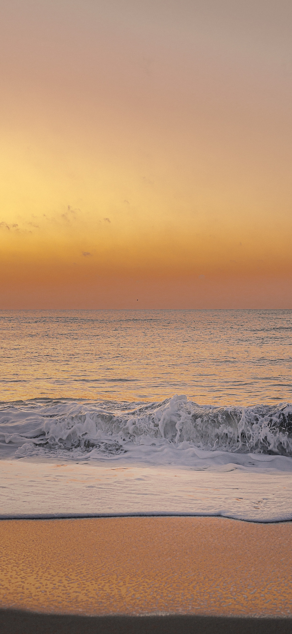 노을이 지면서 노랗게 물들은 하늘과 모래위에 바닷물의 알갱이들이 퍼지고 있는 모습입니다. 하늘부분과 바다부분이 구분이 되어 있어서 홈화면으로 설정해도 예쁠 것 같습니다.