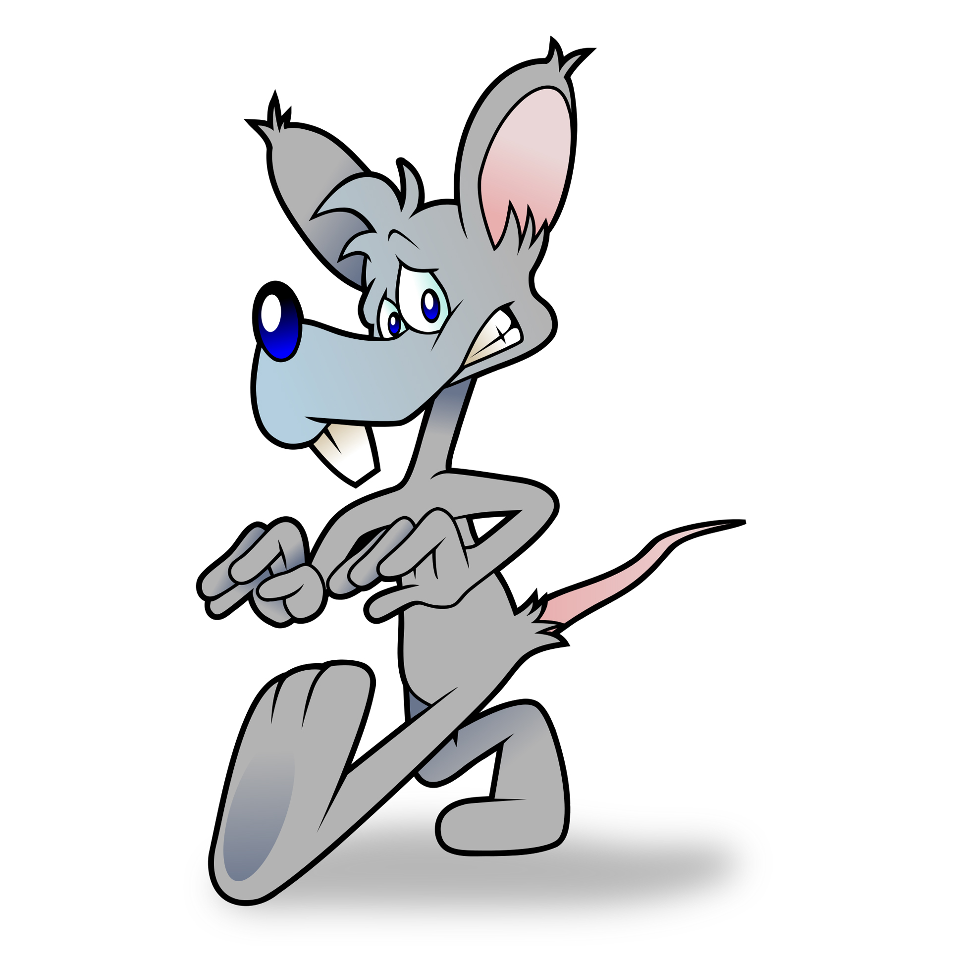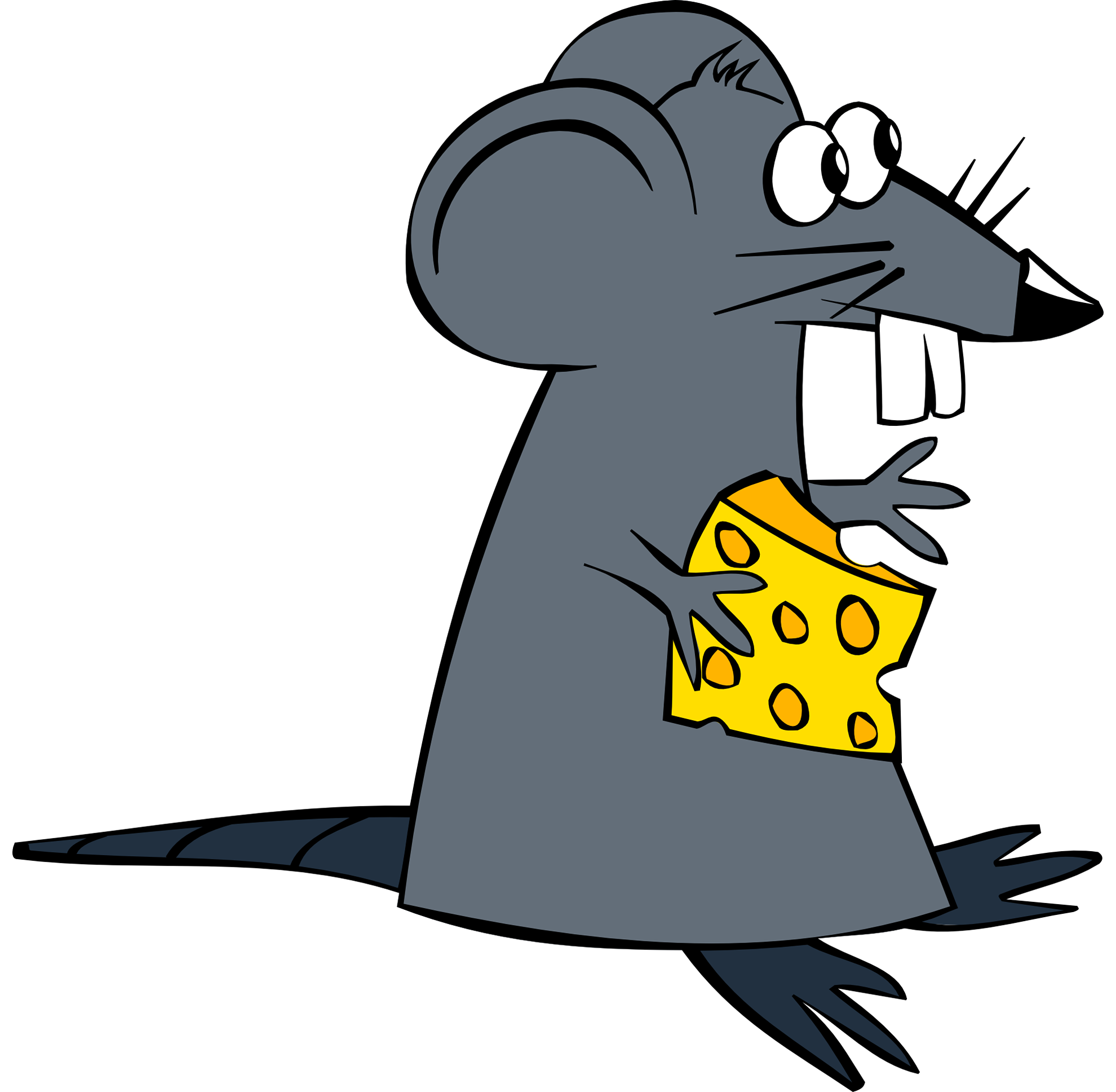 치즈를 들고 있는 앞니가 길게 두 개 나있는 회색빛 몸통을 하고 있는 쥐 캐릭터입니다.