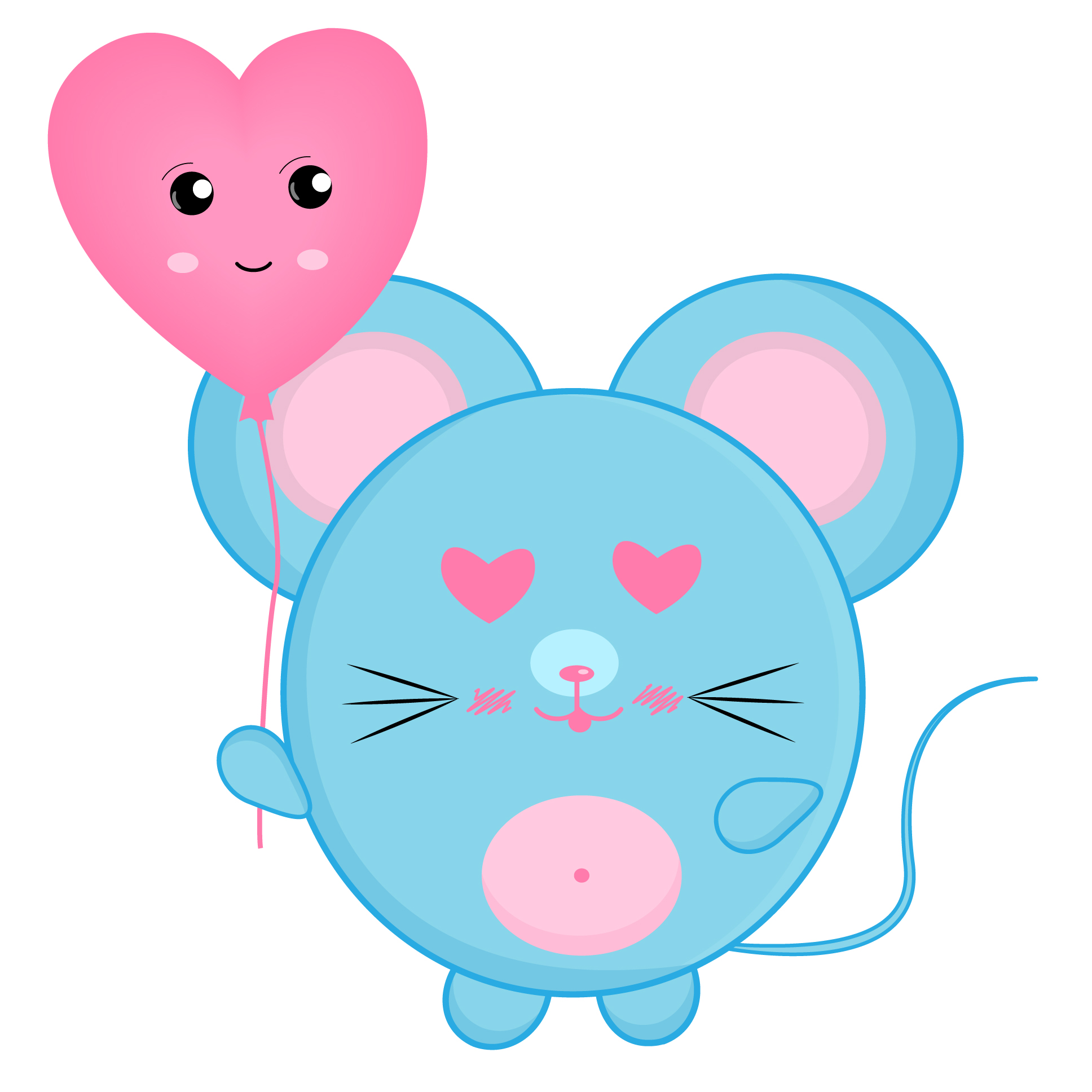 풍선을 들고 눈에 하트를 머금고 있는 쥐의 모습입니다. 아마 좋아하는 사람이 생겨 사랑에 빠진 것 같네요.