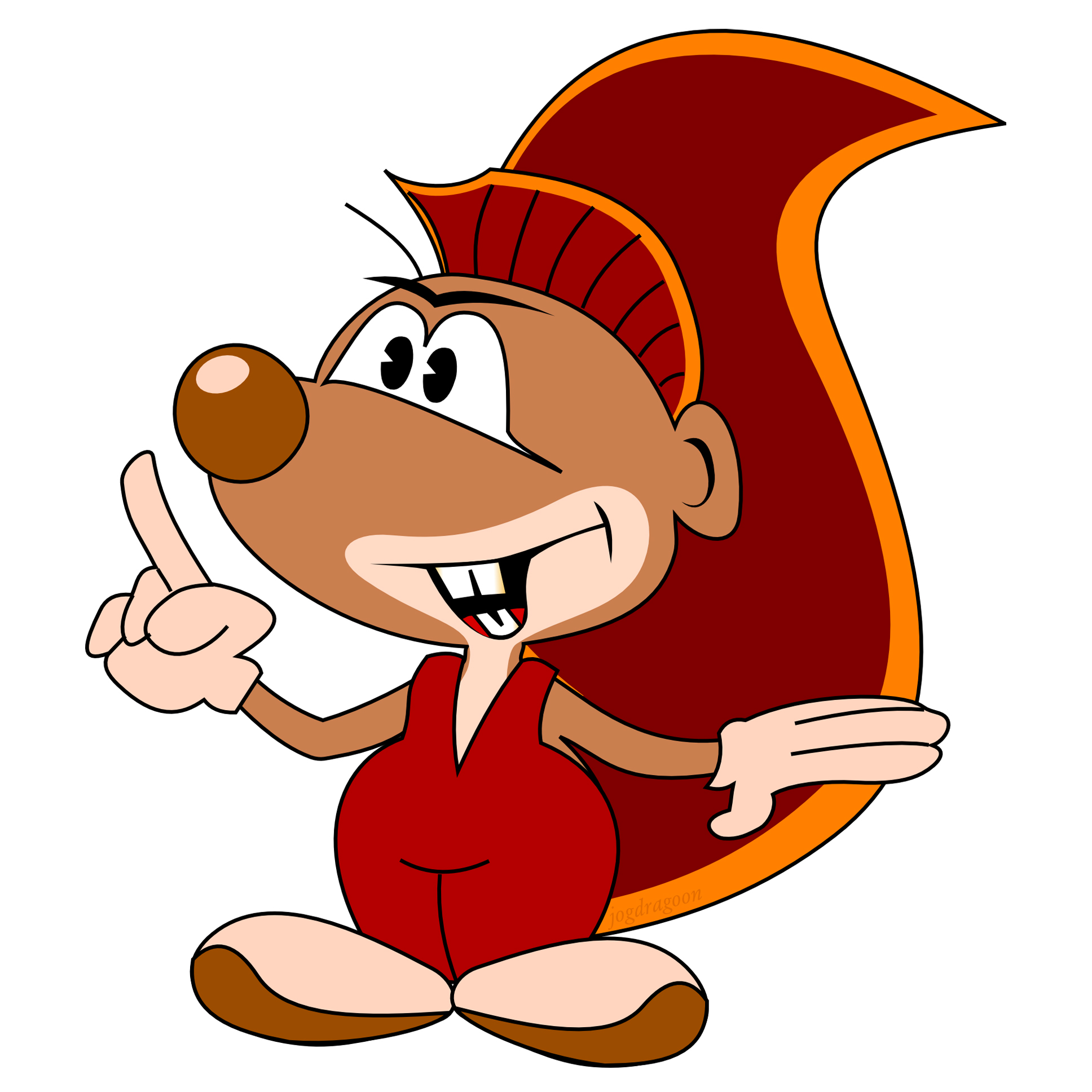 힘차게 걸어가고 있는 다람쥐캐릭터입니다. 한 손은 엄지를 치켜세웠으며 다른 한 손은 어떤 방향을 가리키고 있는 것 같아요. 그리고 옷은 멜빵이 고정이 되어있는 빨간 바지이며 노란색 반팔 목티를 입고 있습니다. 다람쥐가 언제부터 걸어나갈 때 두 발로만 뛰어갔을까요? 아무래도 캐릭터이기 때문에 이런 모습이 자연스럽게 느껴지는 것은 아닐까요?