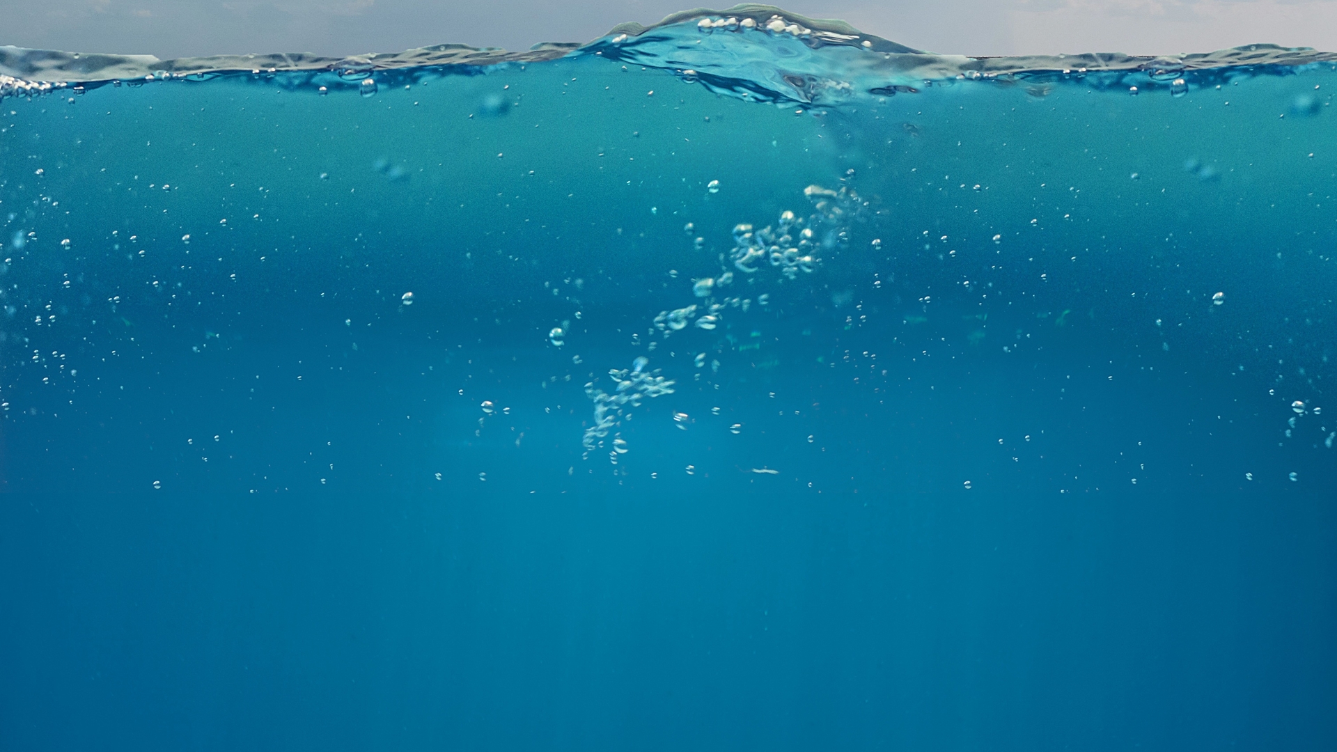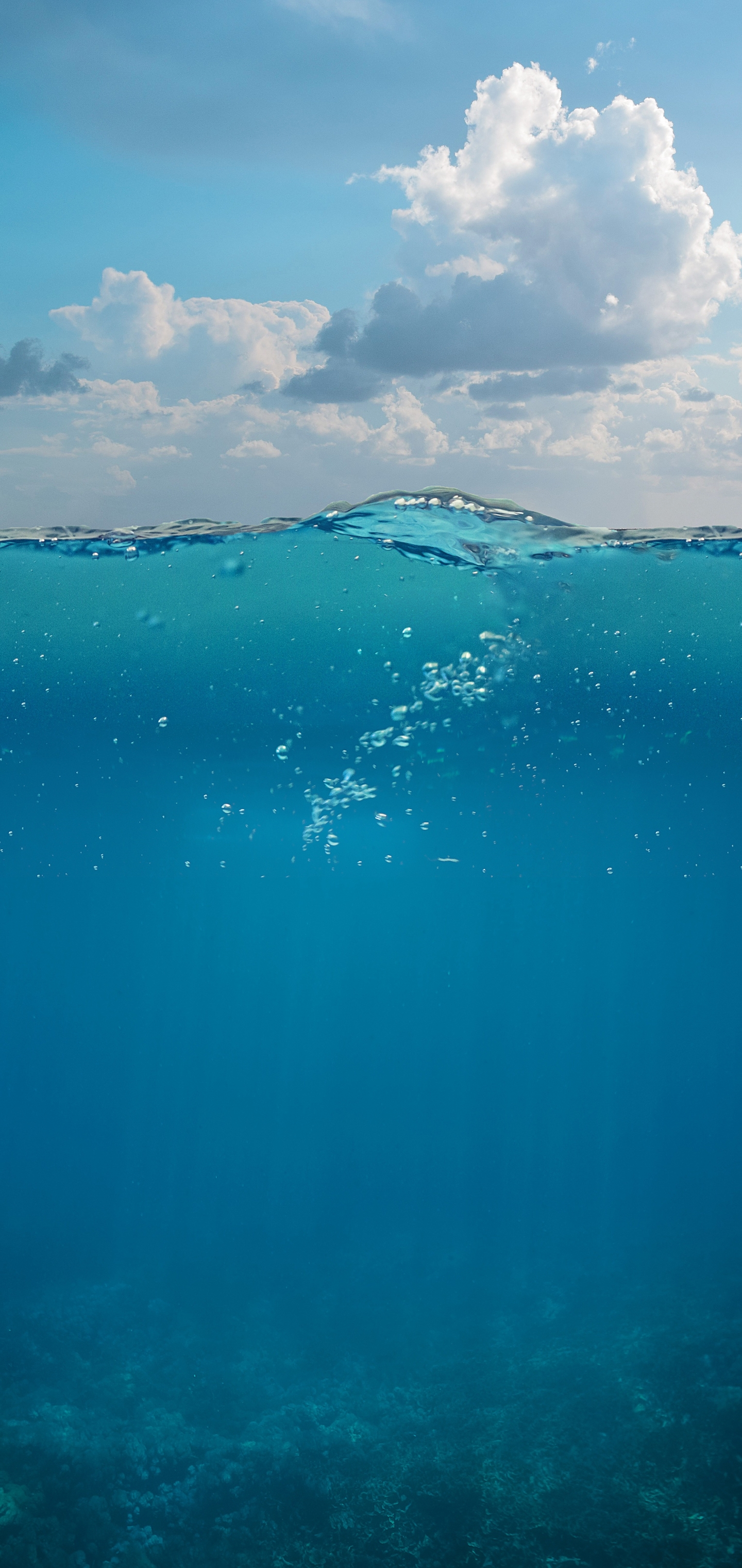 바다의 파란 물속을 단면에서 담은 사진입니다.