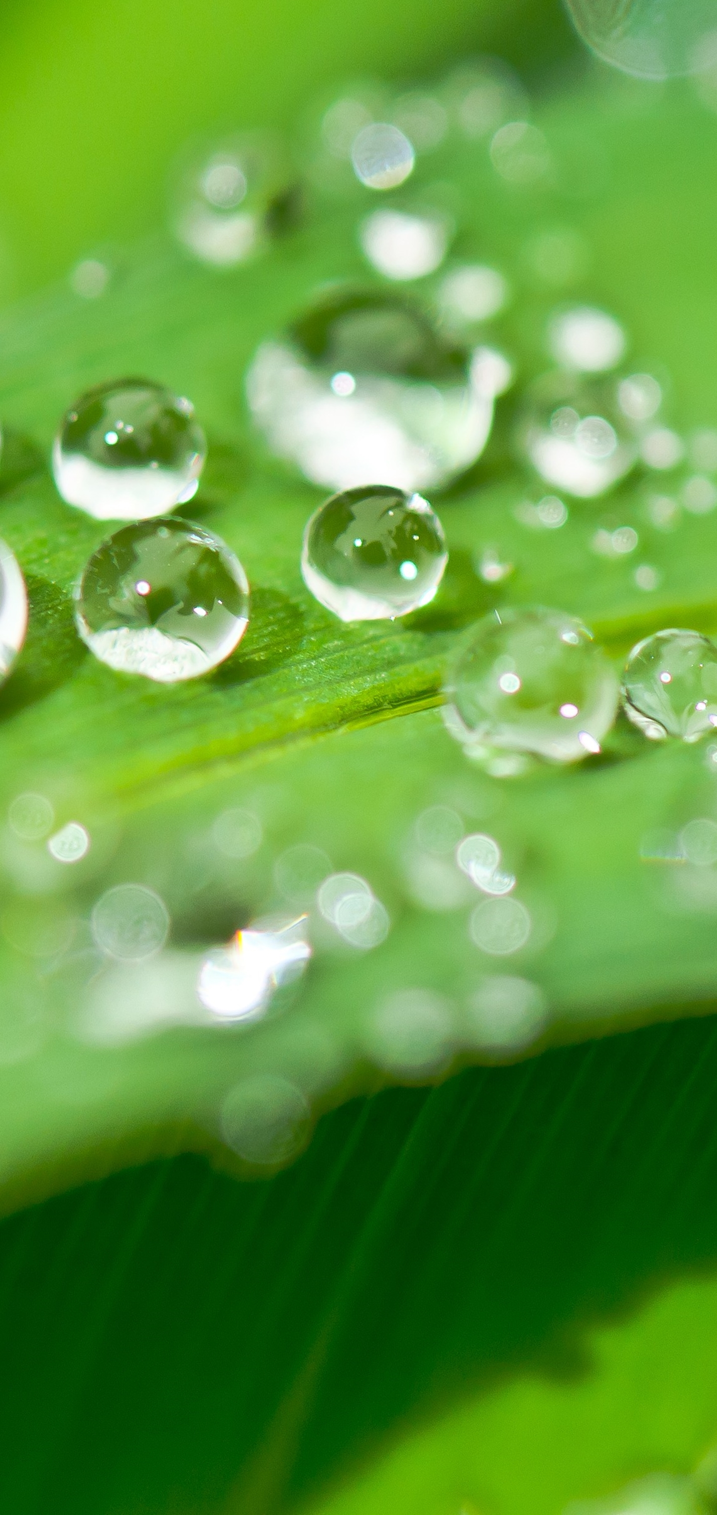 자연의 깨끗한 느낌을 전해주는 것 중 하나가 바로 이슬 사진이 아닐까 생각이 듭니다. 초록색의 푸른 잎 위로 이슬방울이 동글게 맺혀있는 모습입니다.