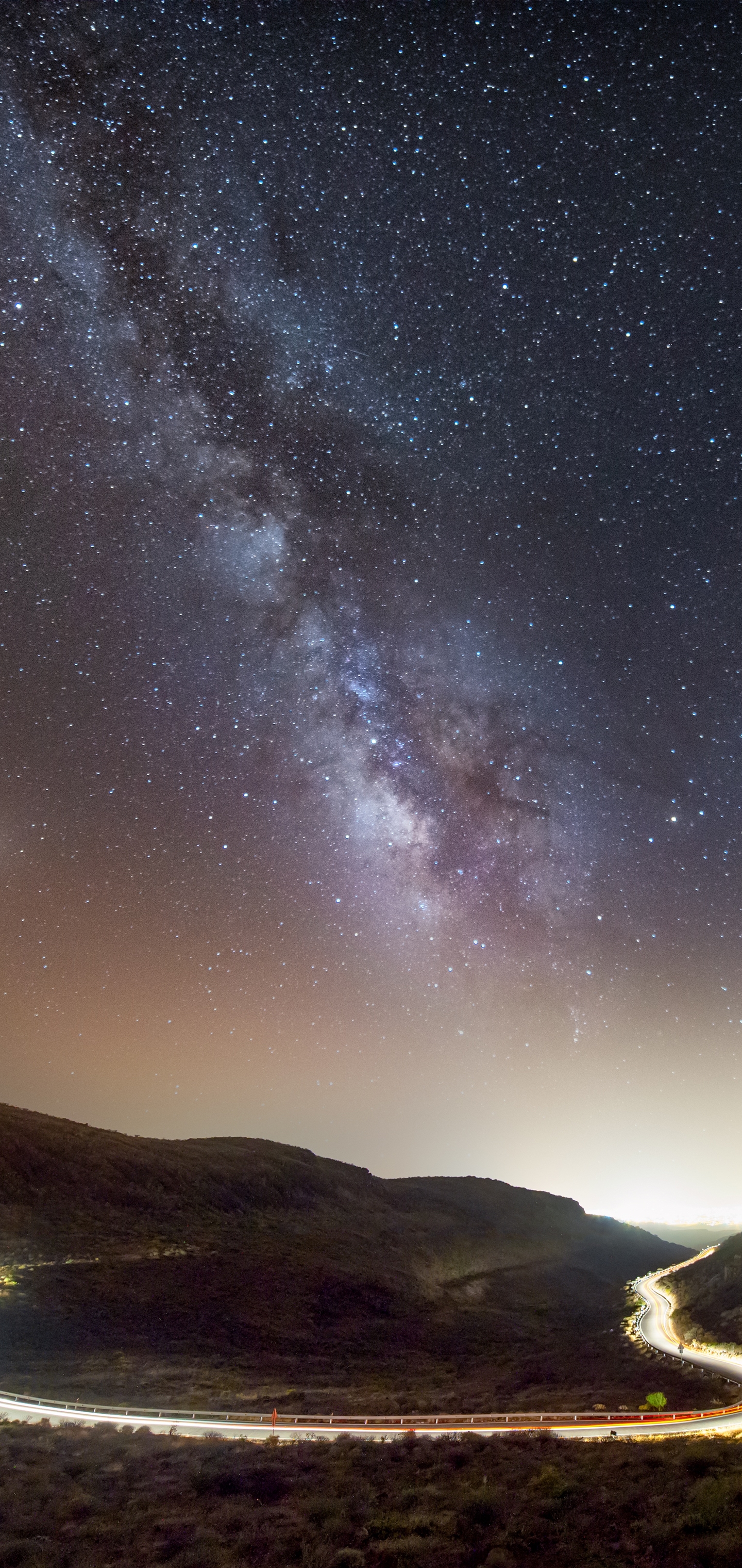 산을 둘러싼 길에 차가 지나가고 있는 모습입니다. 이렇게 두 번째 테마는 밤하늘을 컨셉으로 하고 있는 별이 어우러진 배경화면을 담아본 모습이었습니다.