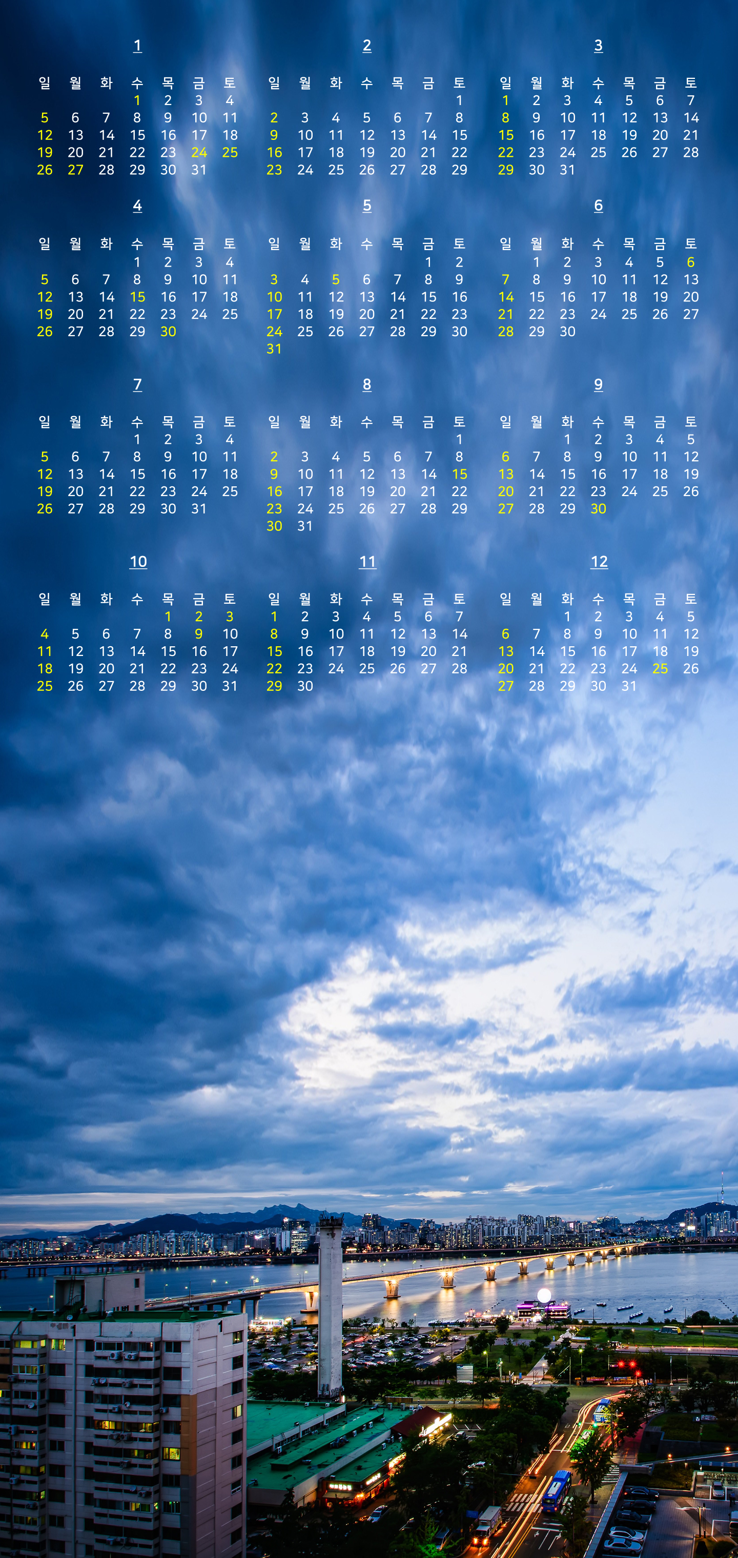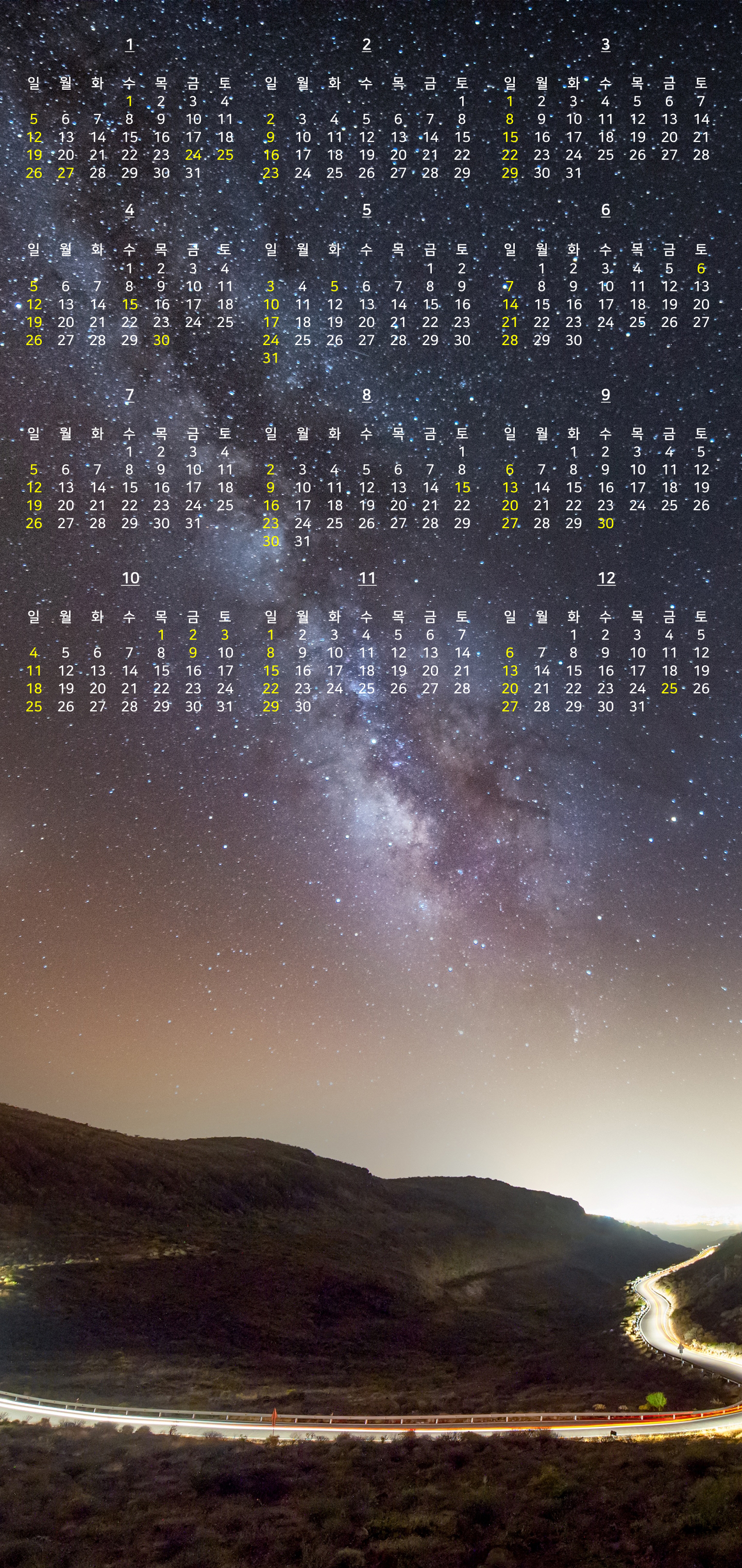 각 모든 이미지는 갤럭시 배경화면, 달력이 표기된 배경화면 이미지, 그리고 컴퓨터 바탕화면으로 지정할 수 있는 이미지 총 세 가지로 구성이 되었으며 테마는 자연, 밤하늘, 바다, 도시, 일러스트 이미지 총 다섯 가지로 구성이 되었습니다.
