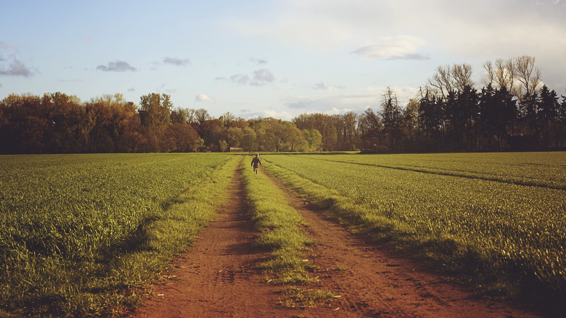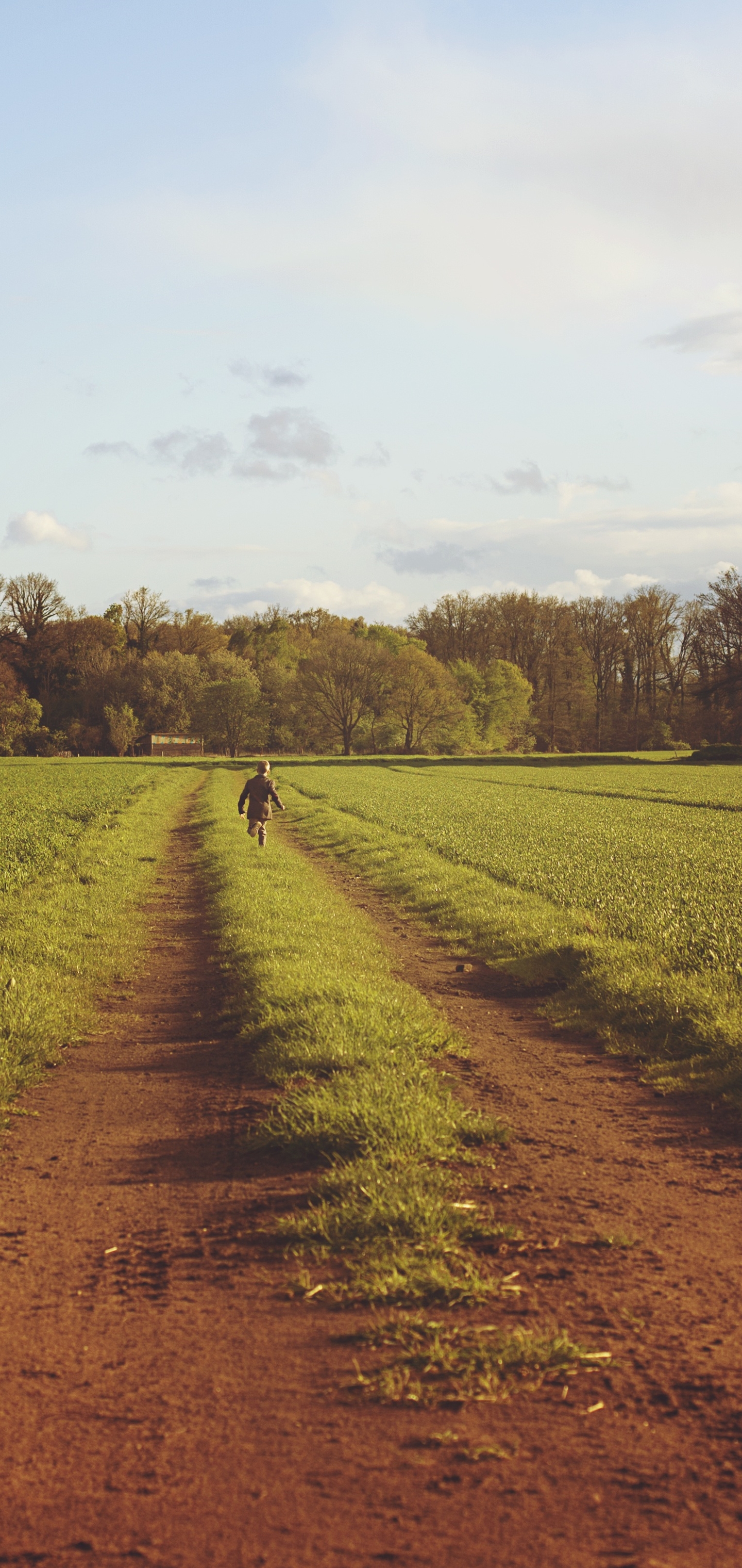 이번 테마인 '자연'의 컨셉에 어우러지는 밭을 배경으로 하여 시골길을 따라 아이가 뛰어가고 있는 뒷모습을 담은 배경화면입니다.