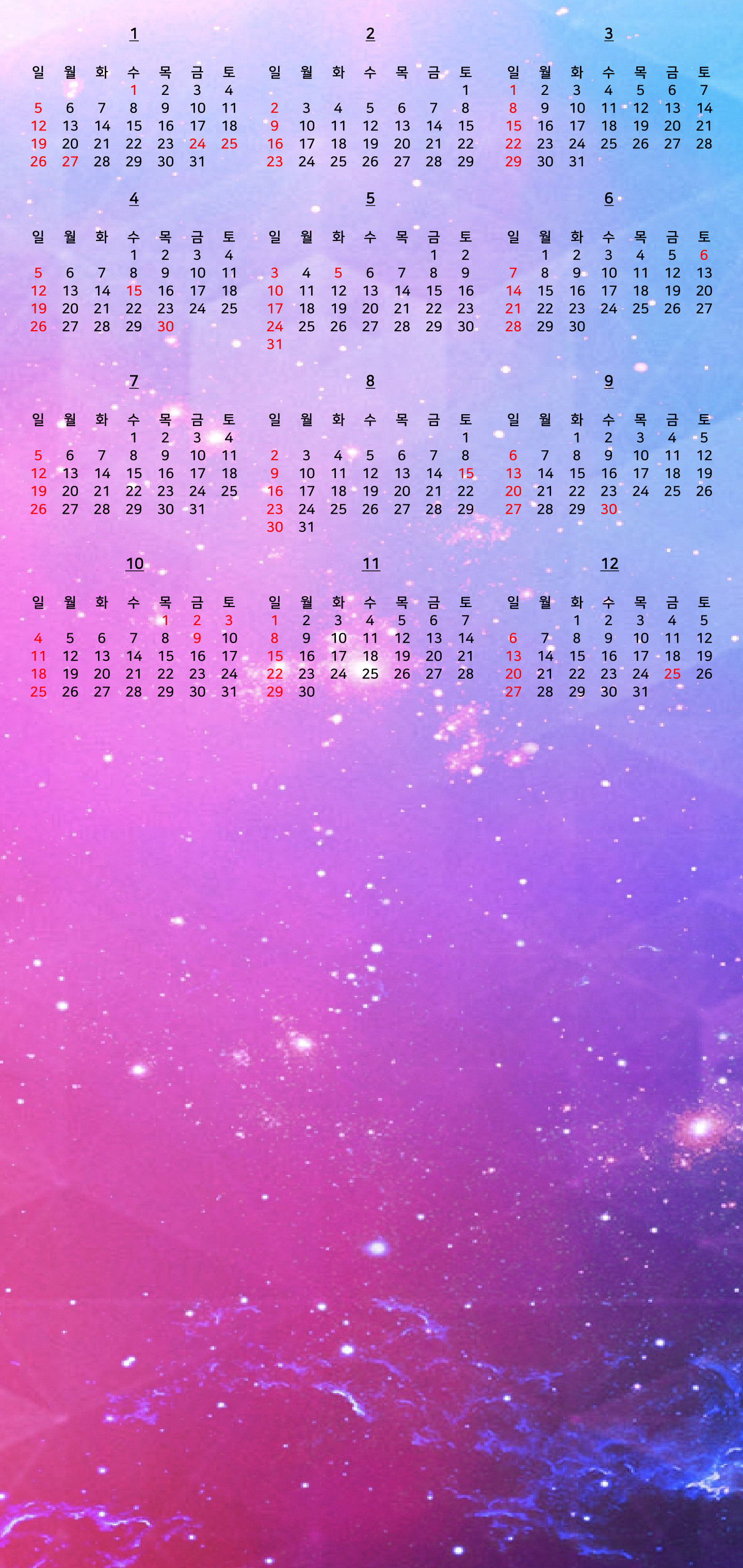 마지막은 여러 일러스트 느낌의 깔끔한 이미지로 된 갤럭시 배경화면입니다. 마찬가지로 각 사진마다 달력, 컴퓨터 배경화면용으로 구성이 되었습니다. 여러분들의 핸드폰 또는 스마트폰이나 노트북 또는 컴퓨터까지 다양한 기기들에 활용하시기 좋은 사진들이었습니다.