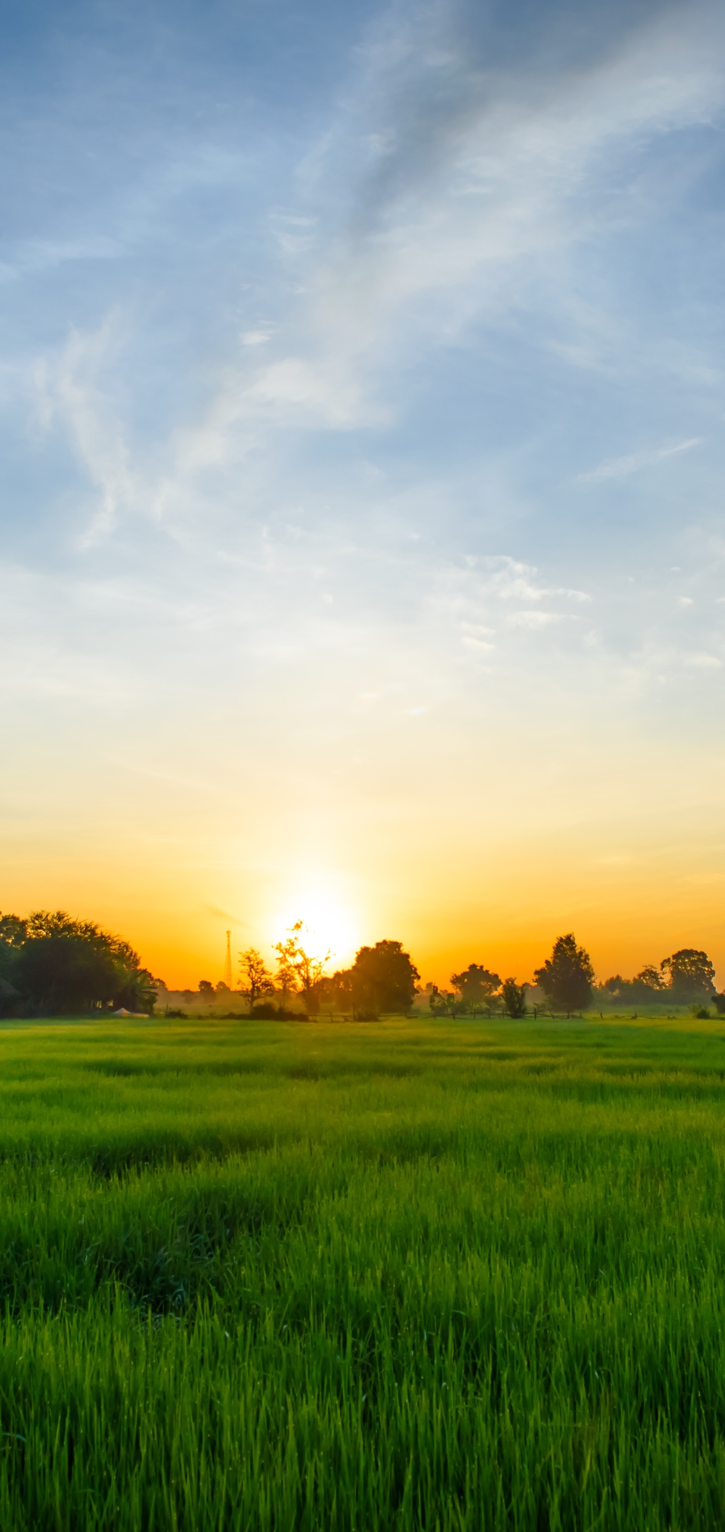 다음은 푸른 잎의 대지에 살짝 노을 진 하늘과 태양이 어우러진 갤럭시 배경화면입니다.