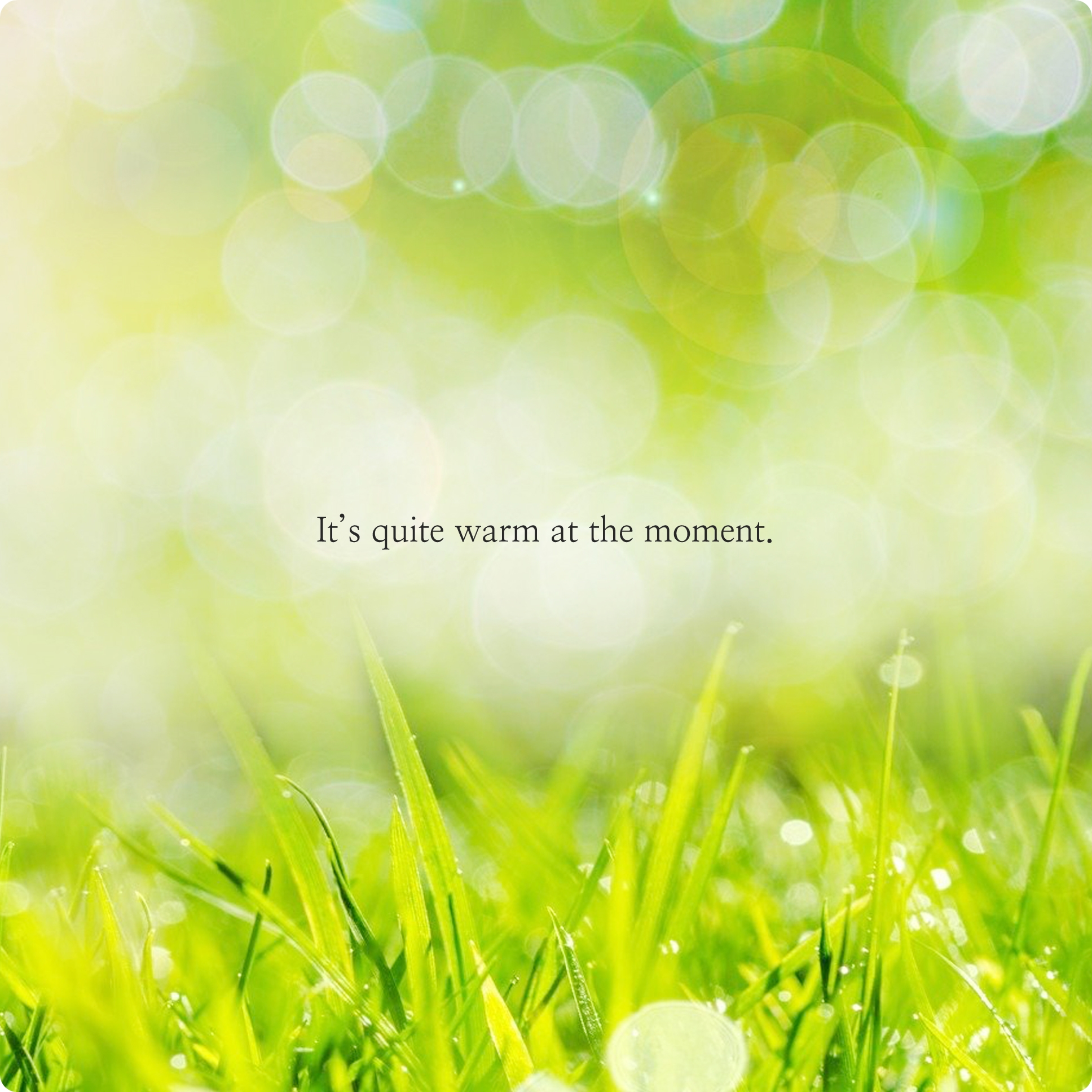 'It's quite warm at the moment'는 '지금은 꽤 따뜻해' 라고 해석할 수 있습니다. 막연하게 기분이 좋은 것일 수도 있고 또는 새로운 사랑을 시작할 조짐인 것 같기도 하고.. 왜 따뜻한지는 온전히 자신만이 알고 있겠죠? 그런 숨은 의미를 꽁꽁 숨겨두기에 좋은 글귀인 것 같네요.