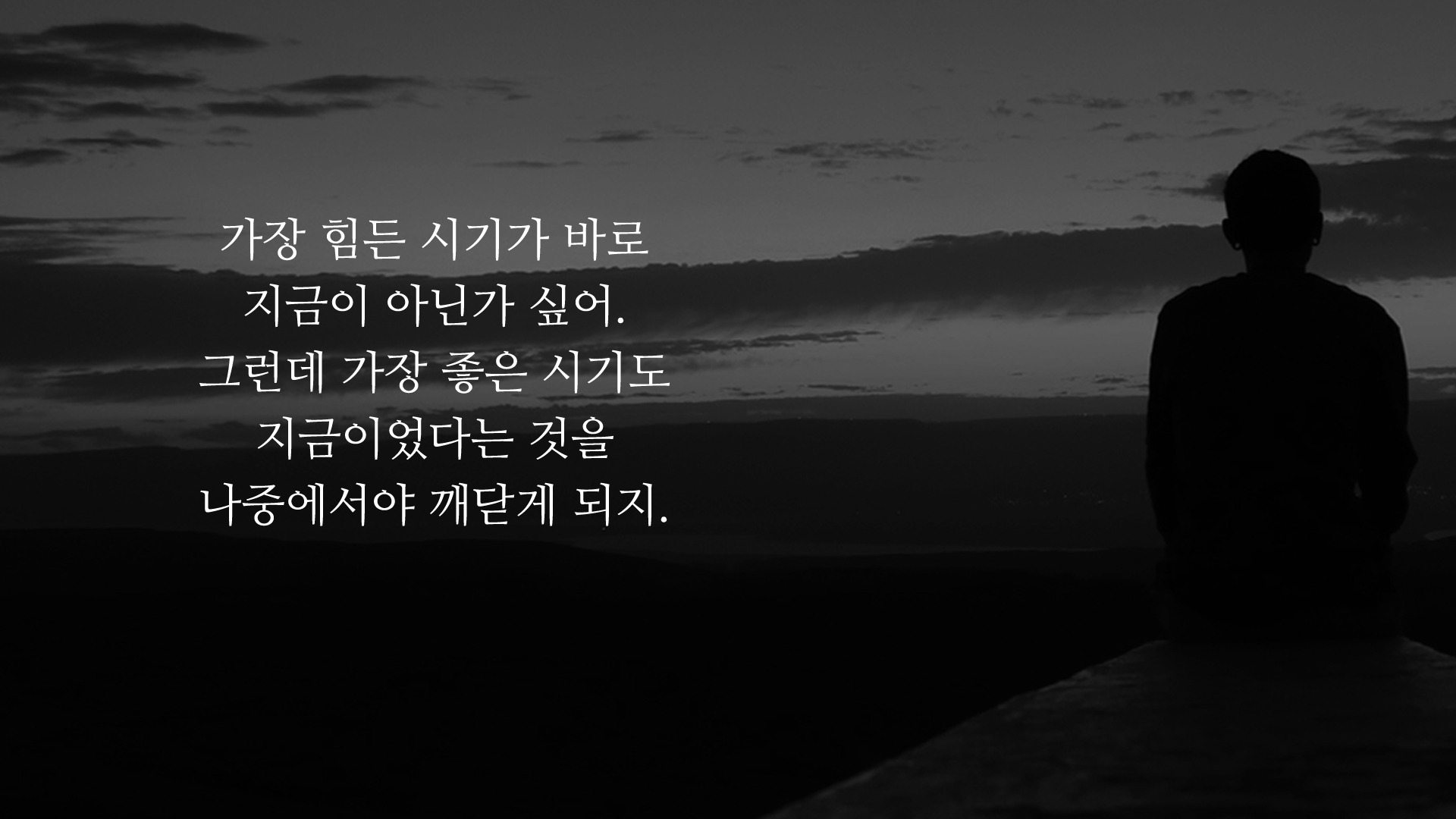 인생에서 가장 어려운 시기가 바로 지금일 수 있어요. 그런데 가장 좋았던 시기는 지금이었다는 것을 깨닫고 그리워할 줄도 모릅니다. 그런 삶의 메시지를 이런 글귀로 표현을 해봤습니다.
