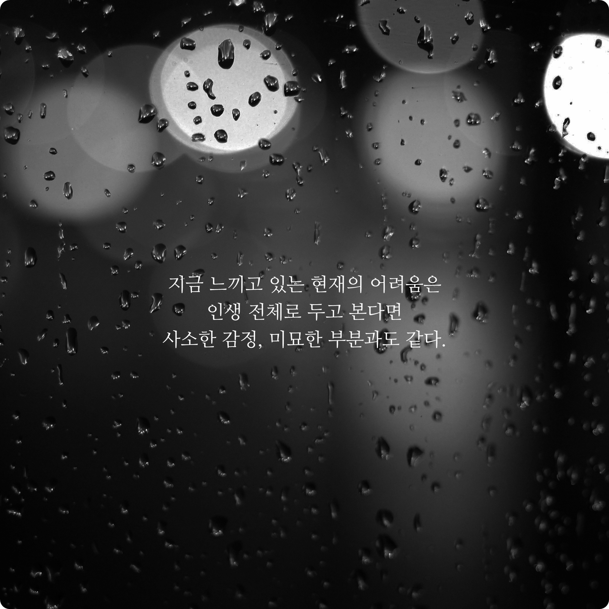 지금 느끼고 있는 현재의 어려움은 인생 전체로 두고 본다면 사소한 감정, 미묘한 부분과도 같다.