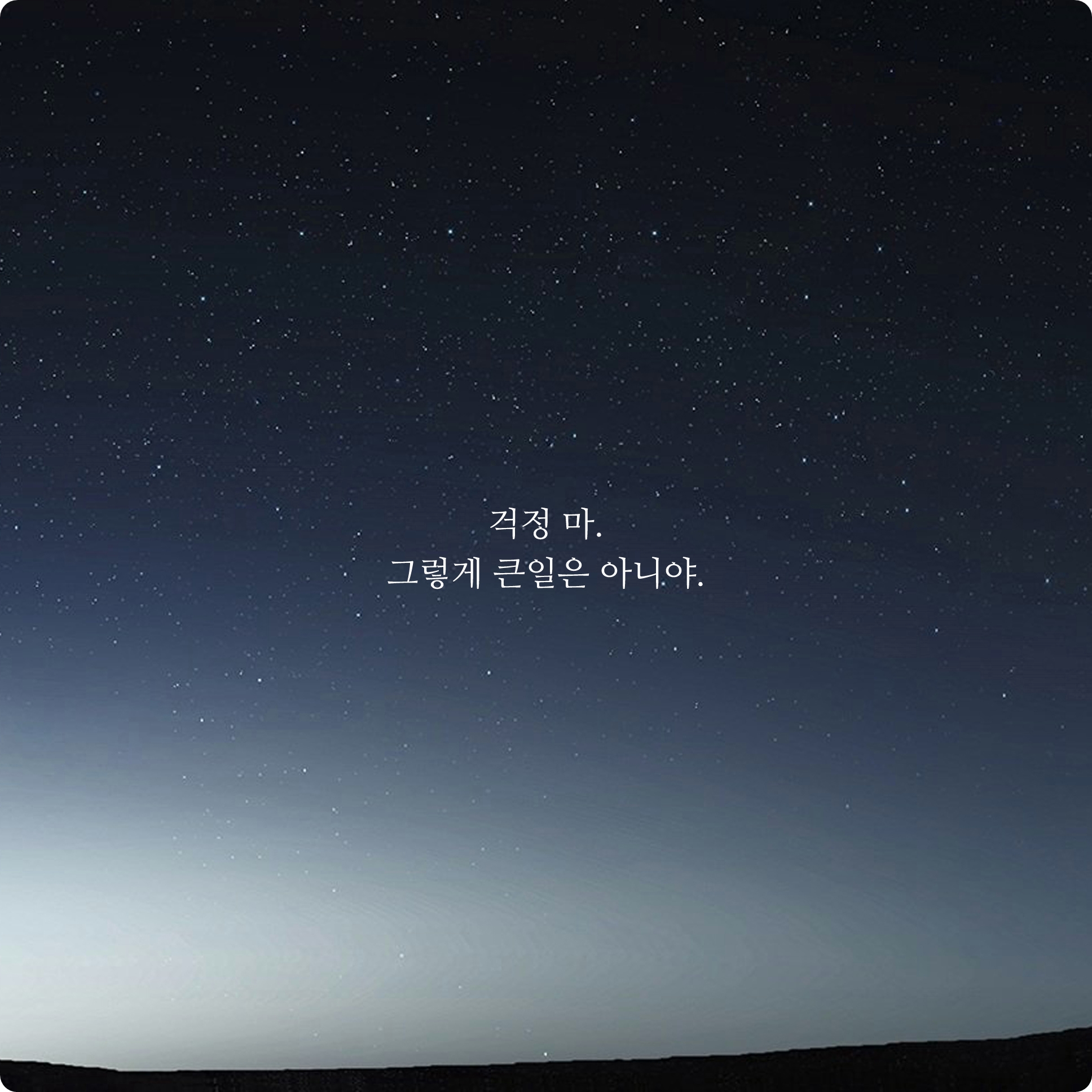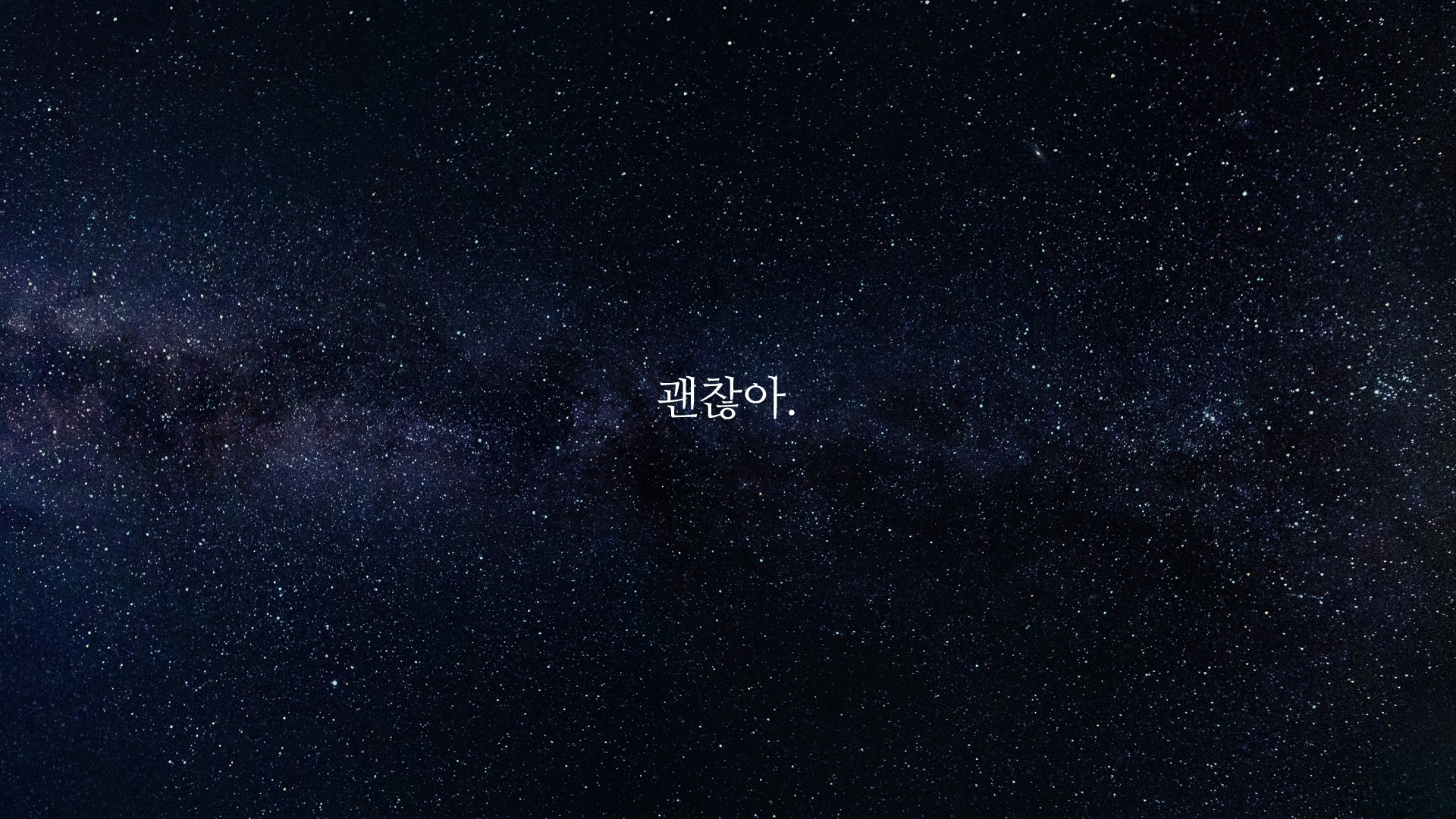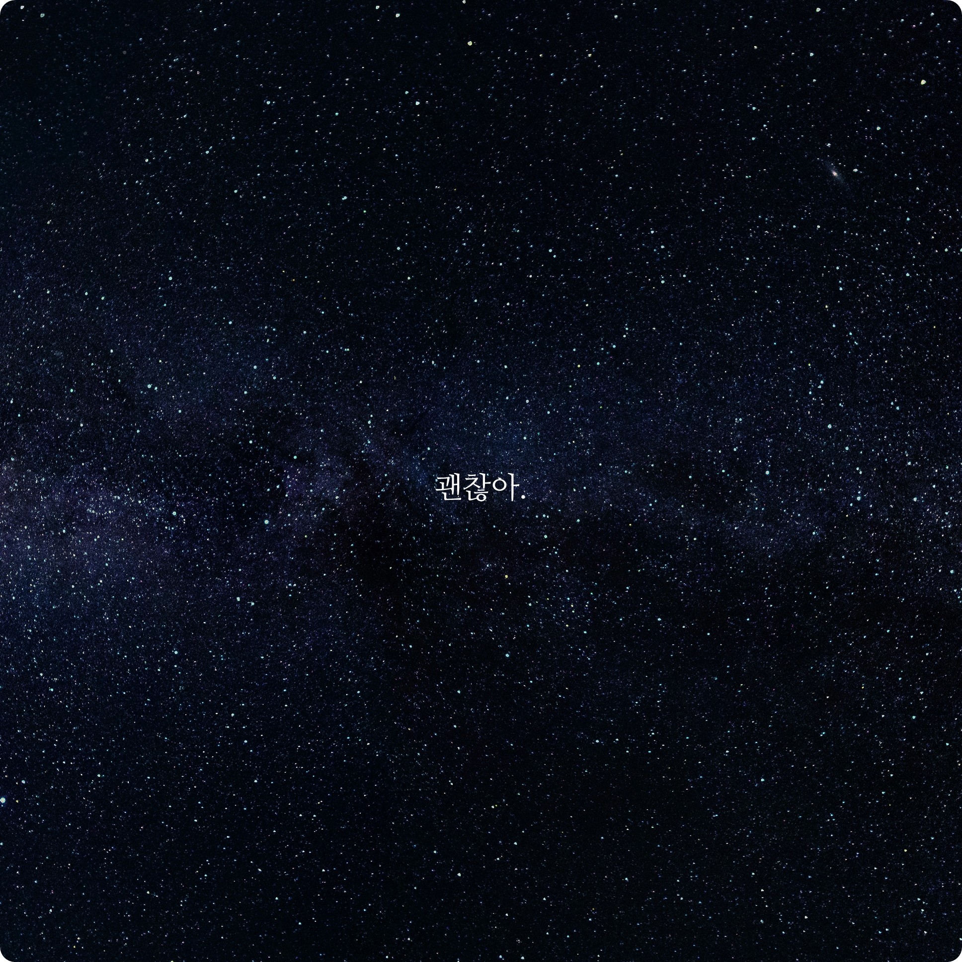 가장 짧은 글이라고 할 수 있는 글귀입니다. 용기를 줄 수 있는 딱 떠오르는 말이 이 문장이었어요. '괜찮아'라는 짧은 말이지만 자기 스스로를 격려하고 위로해줄 수 있는 좋은 글귀가 아닌가 싶습니다.