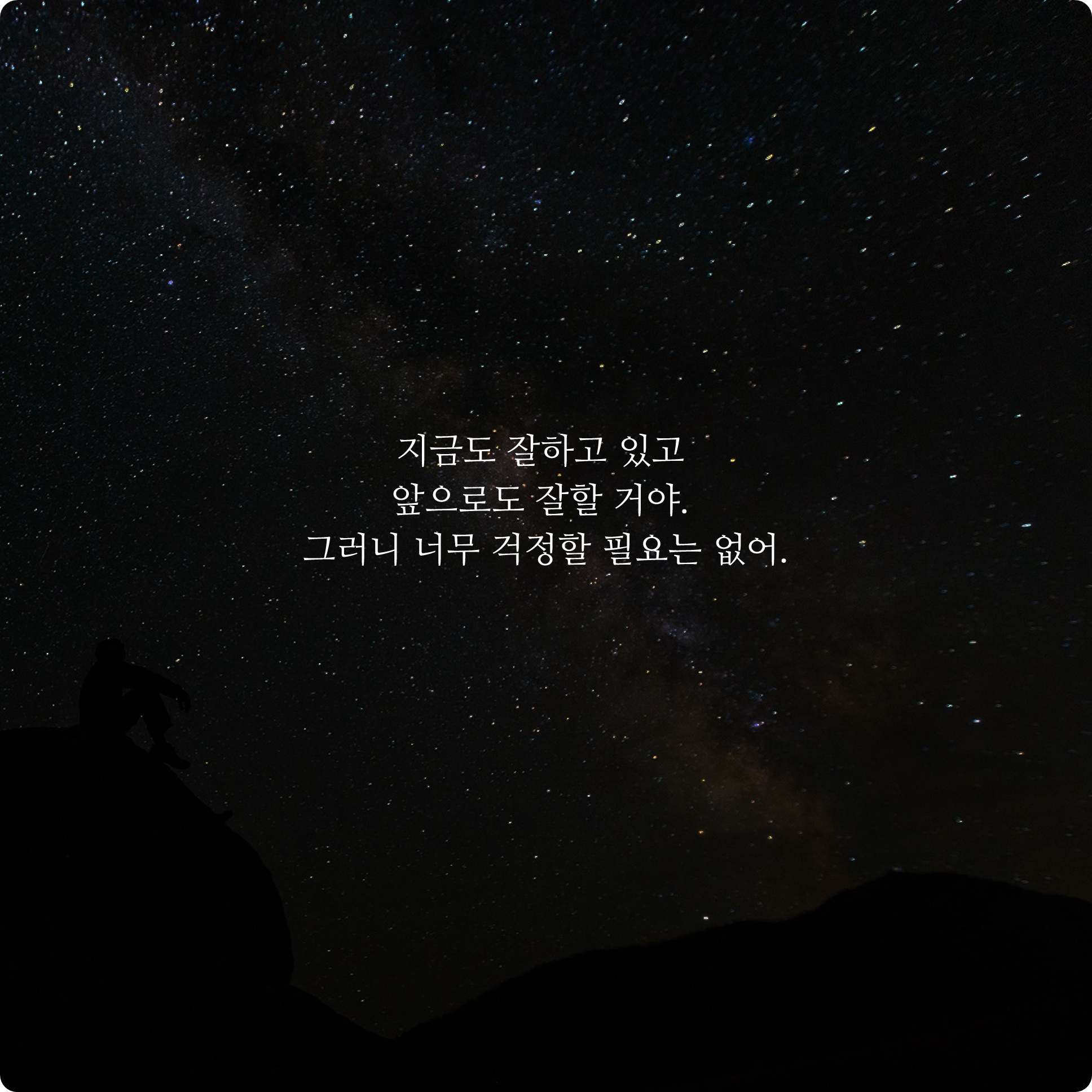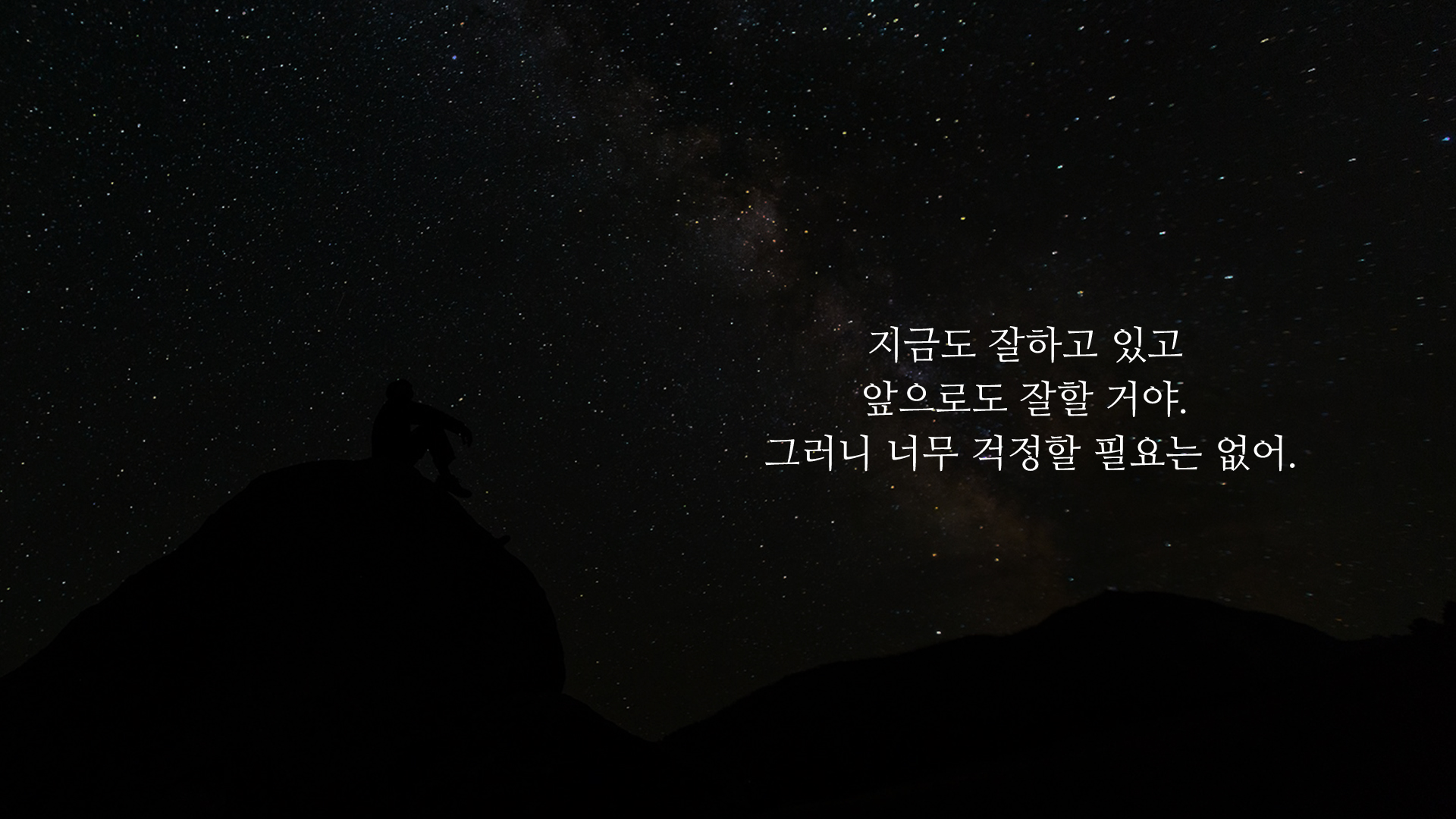 지금도 잘하고 있고 앞으로도 잘할 거야. 그러니 너무 걱정할 필요는 없어.