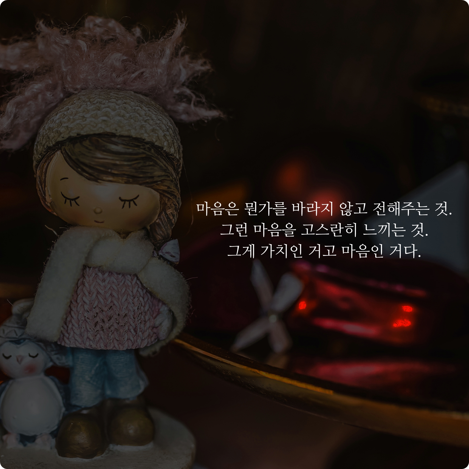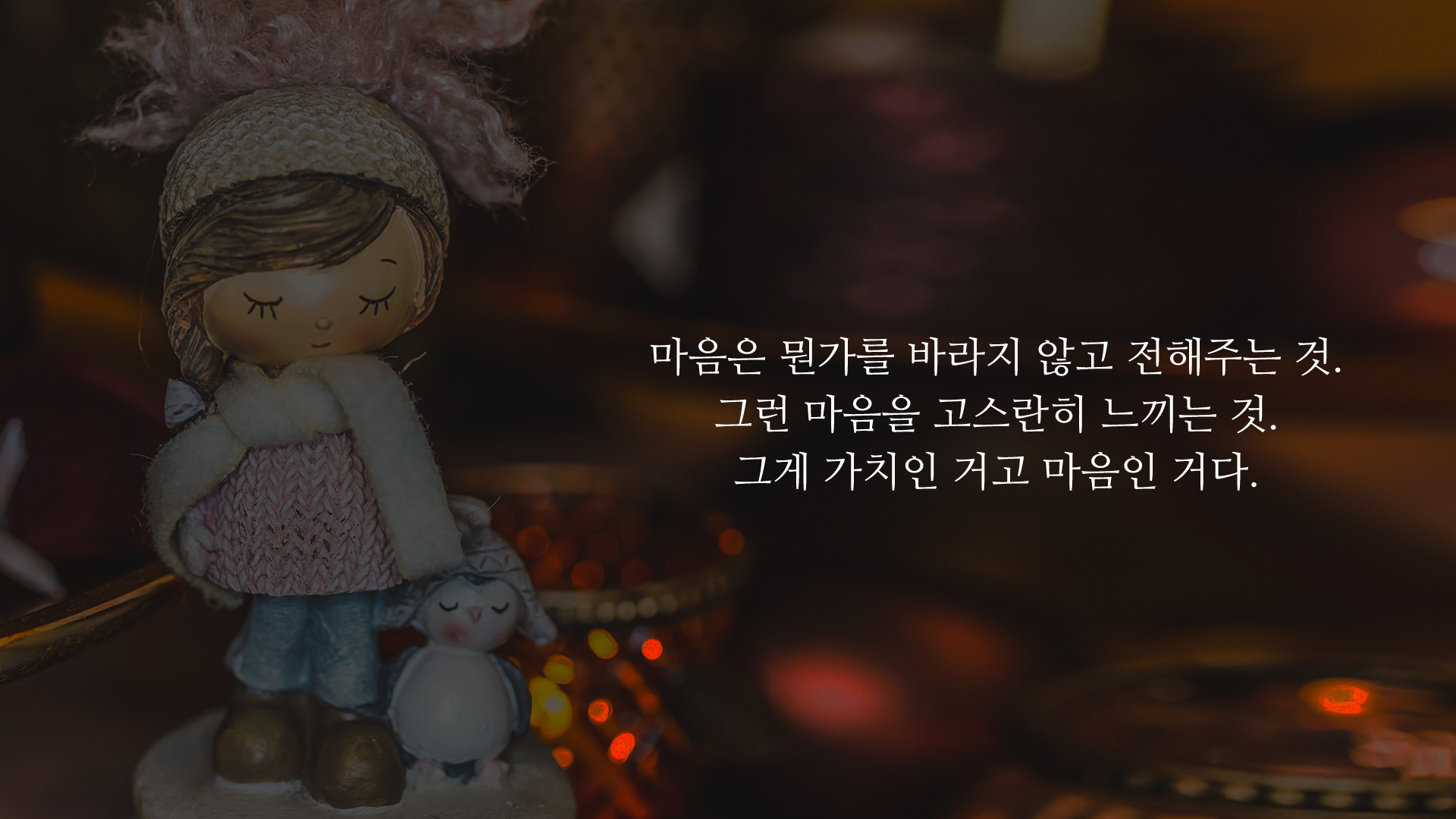 마음은 뭔가를 바라지 않고 전해주는 것. 그런 마음을 고스란히 느끼는 것. 그게 가치인 거고 마음인 거다.