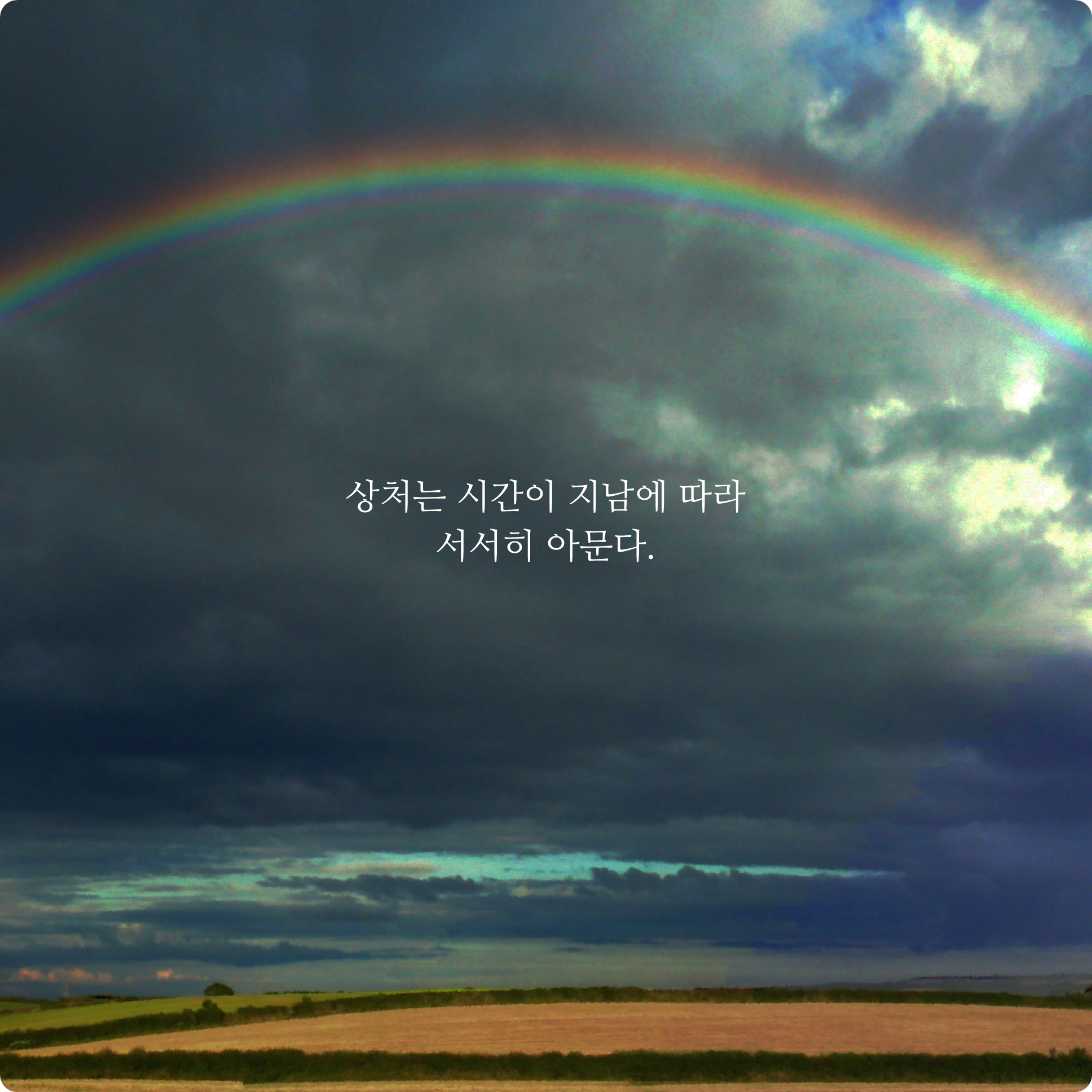 삶을 살아가면서 느끼게 되는 아픔 또는 사랑에 대한 상처.. 이러한 것들은 모두 시간이 지나면서 점차 아문다고 하죠. 하지만 그것이 계속 반복이 되거나 상처가 깊은 아픔으로 다가온다면 시간이 지나 커다란 멍으로 남겨있을 지도 몰라요. 그래서 큰 아픔을 느끼고 있다면 최대한 치유가 될 수 있는 방법들을 찾고 스스로를 위로해주는 것이 중요합니다.