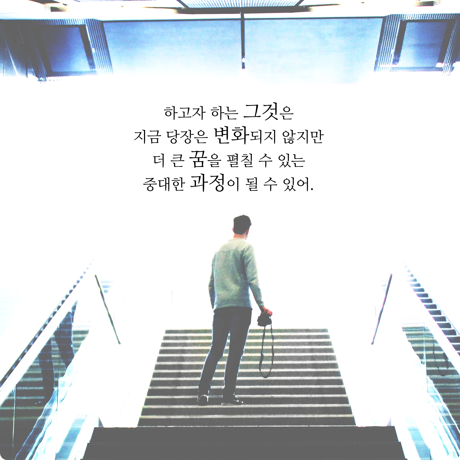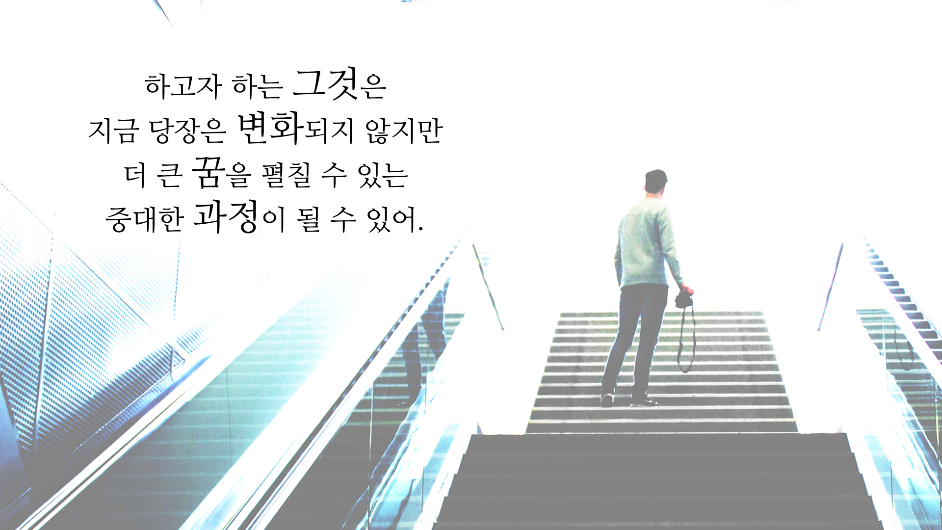 하고자 하는 그것은 지금 당장은 변화되지 않지만 더 큰 꿈을 펼칠 수 있는 중대한 과정이 될 수 있어.