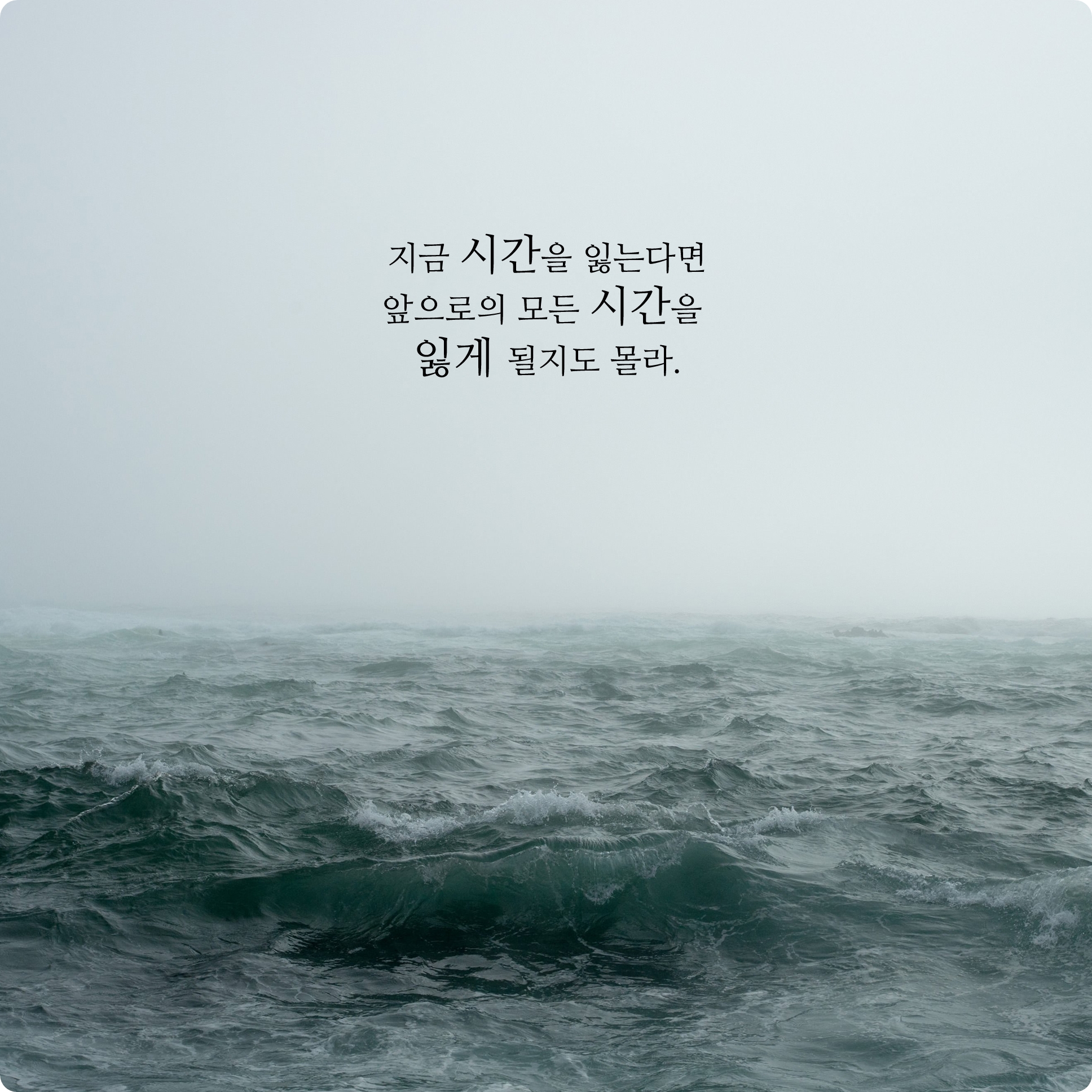 지금 시간을 잃는다면 앞으로의 모든 시간을 잃게 될지도 몰라.