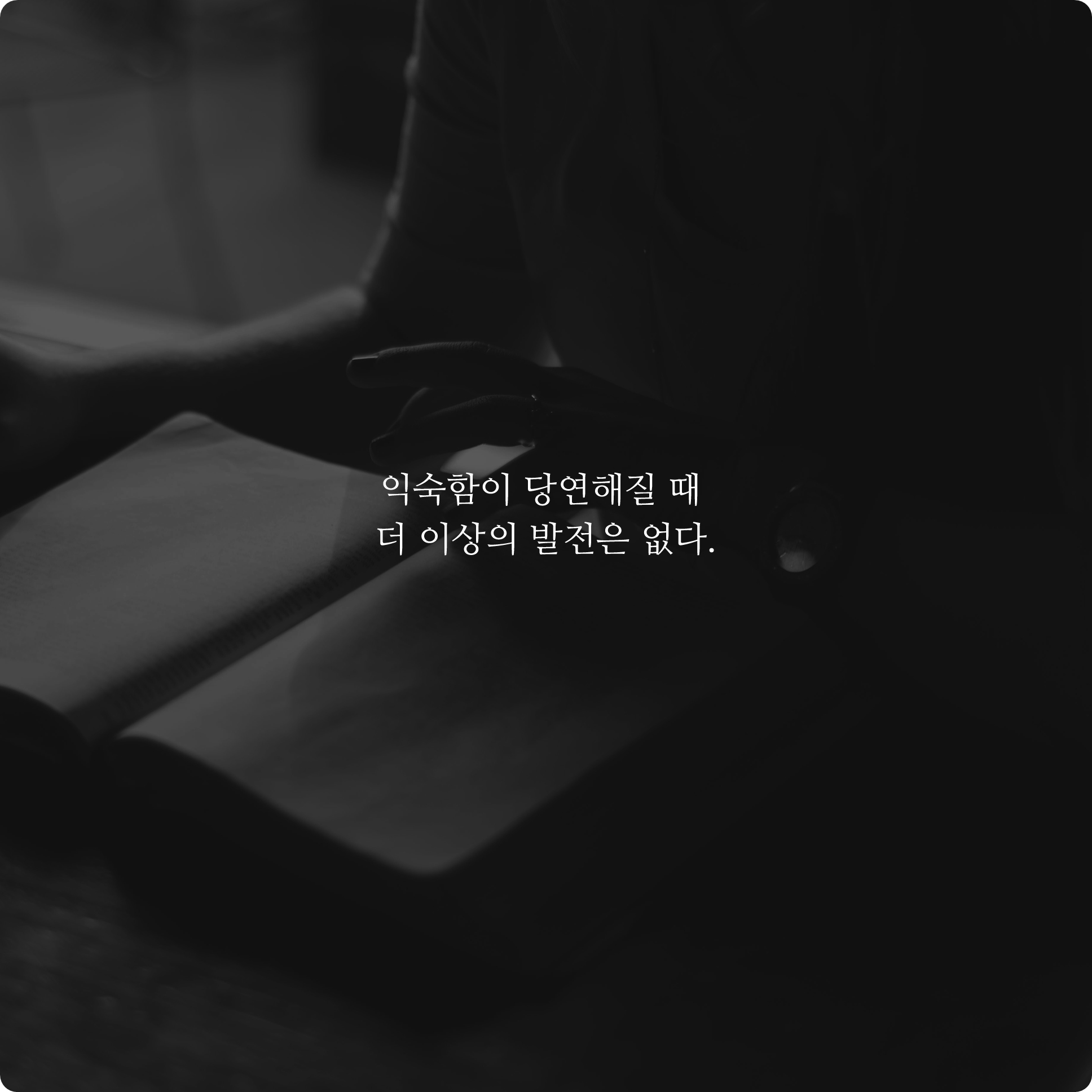익숨함이 당연해질 때 더 이상의 발전은 없다.