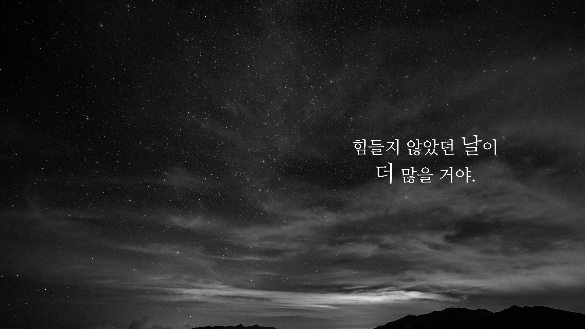 글을 읽기가 싫으신 분들은 영상으로 편하게 감상할 수 있도록 동영상으로 만들어 봤으니 위에 영상으로 감상해보는 것도 좋을 것 같네요. 비록 지금 힘든 시기를 겪고 있다면 정말 잘하고 있다고 말하고 싶고 부디 잘 이겨내셔서 시간이 흘러 되돌아봤을 때 지금 순간들이 더욱 더 아름답게 빛날 수 있는.. 그런 마음가짐을 가지셨으면 좋겠네요. 항상 응원합니다.