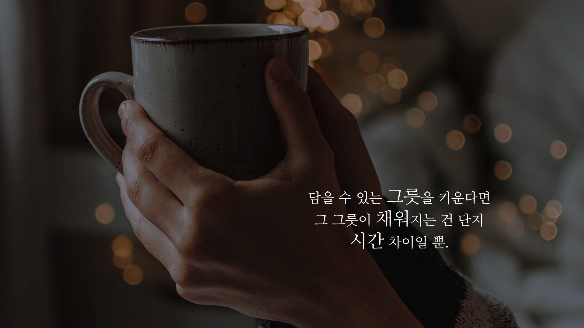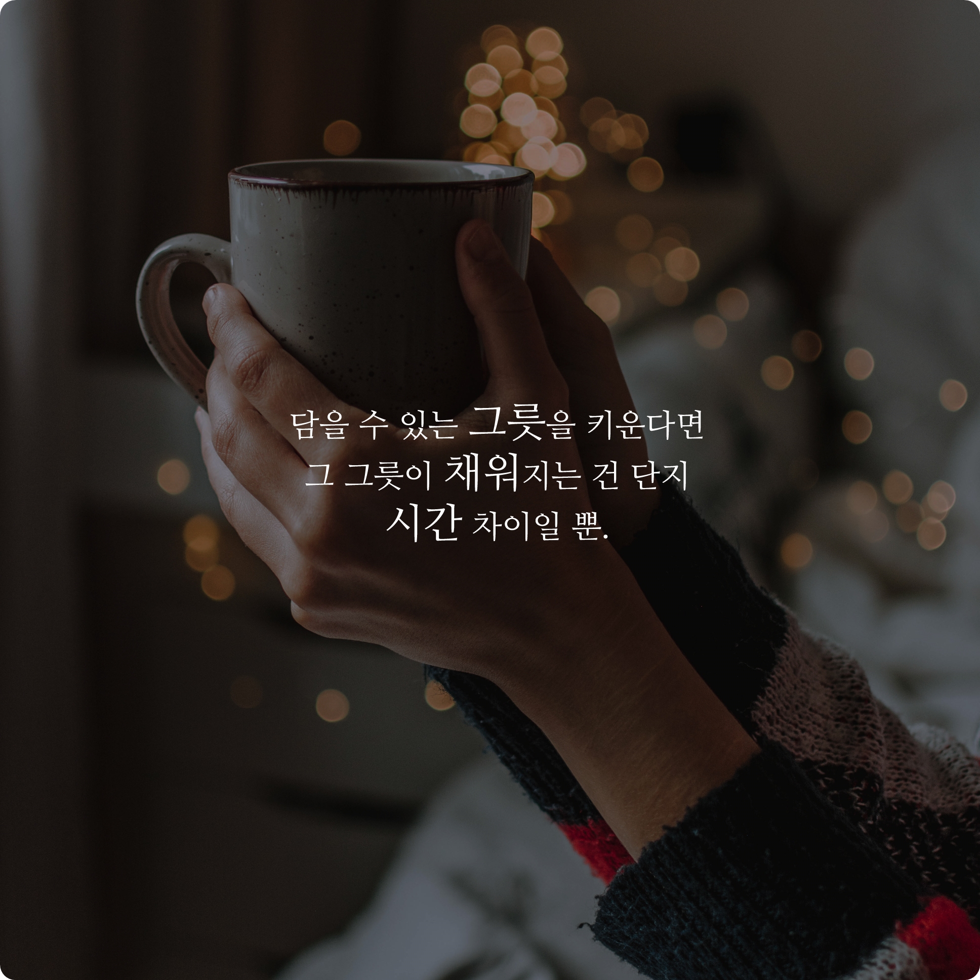 담을 수 있는 그릇을 키운다면 그 그릇이 채워지는 건 단지 시간 차이일 뿐.