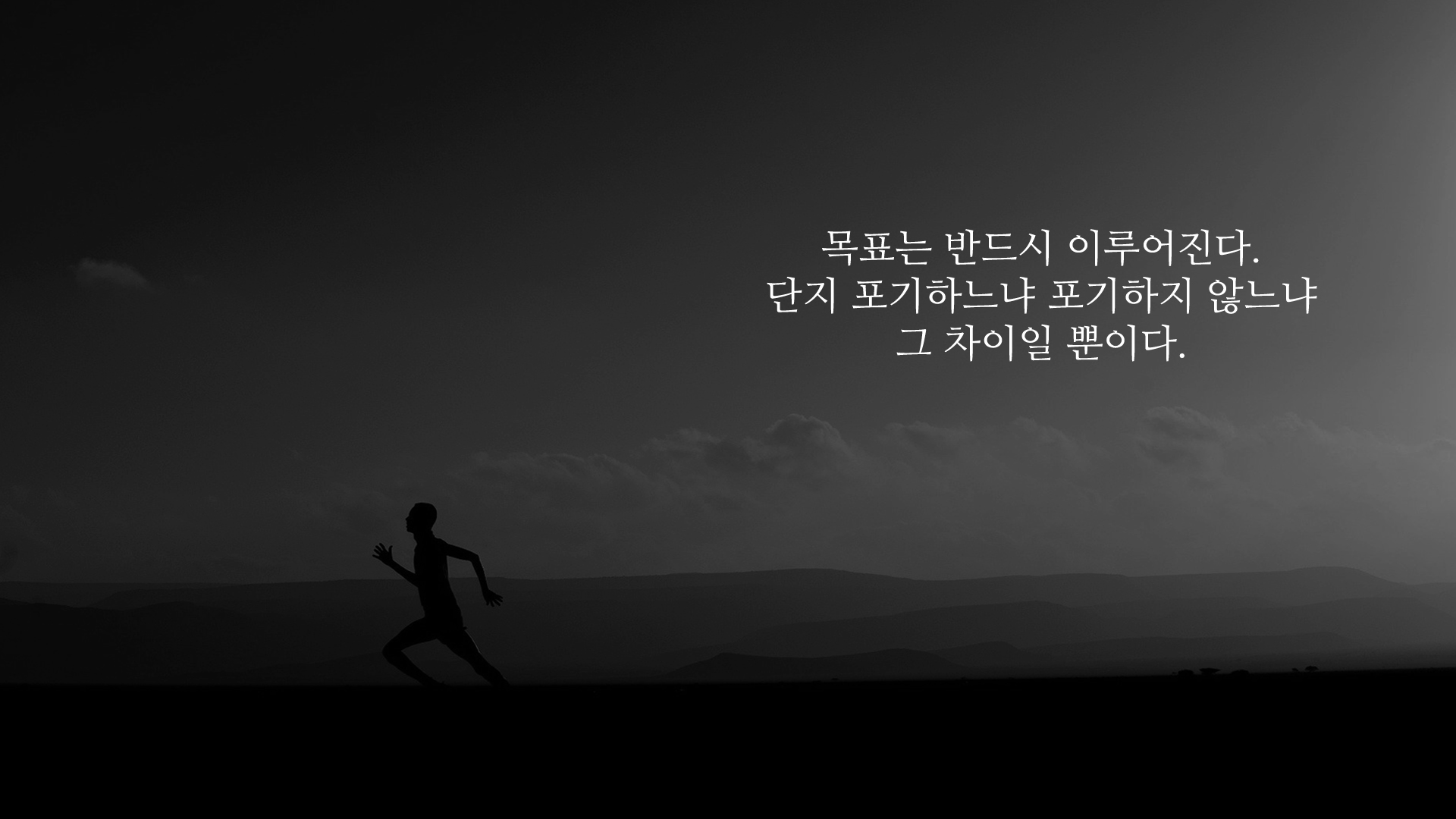 목표는 반드시 이루어진다. 단지 포기하느냐 포기하지 않느냐 그 차이일 뿐이다.