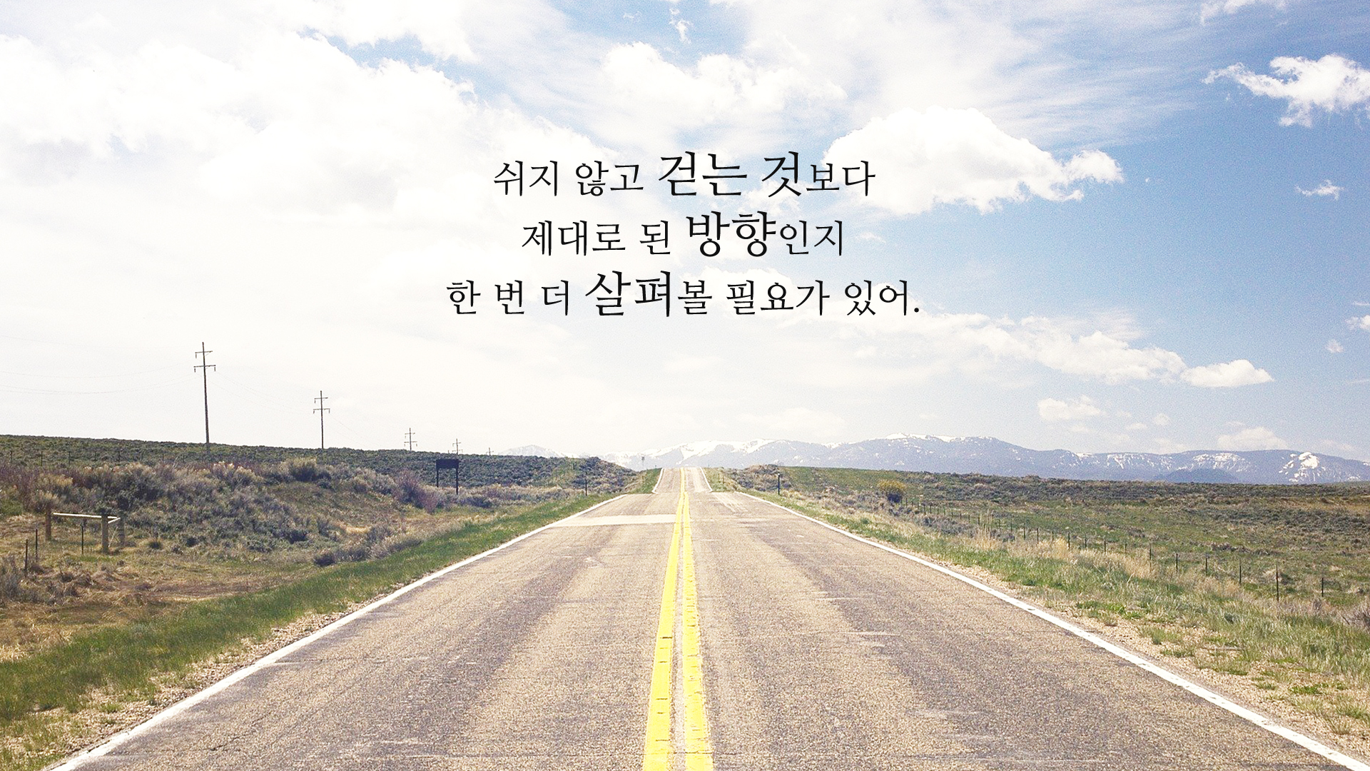 쉬지 않고 걷는 것보다 제대로 된 방향인지 한 번더 살펴볼 필요가 있어.