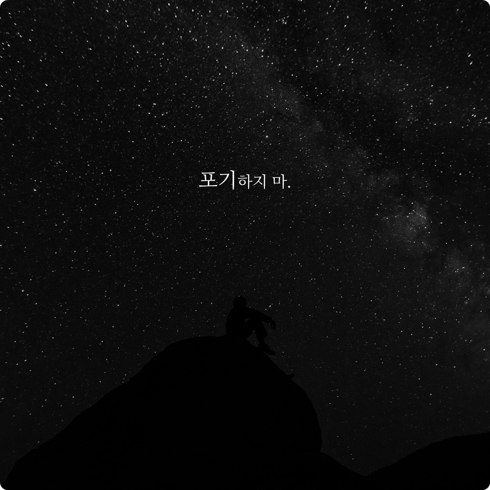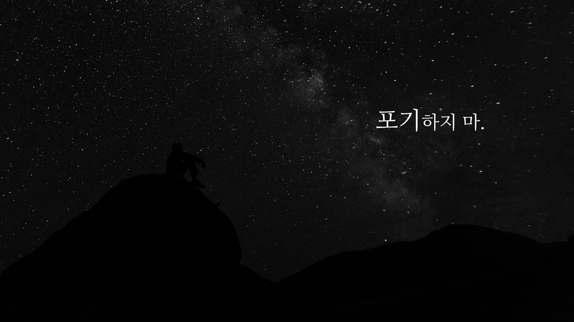포기하지 말라는 조금 더 간결하고 간단한 문장을 심플하게 적은 힘들때 힘이되는 글귀입니다. 어쩌면 지금 글의 모든 메세지와 글들은 결국엔 위의 한 문장의 메세지를 다 담고 있습니다.