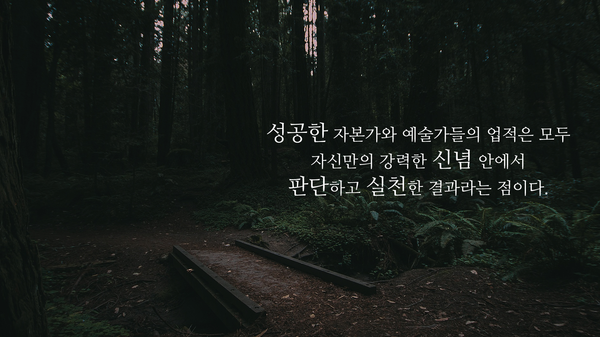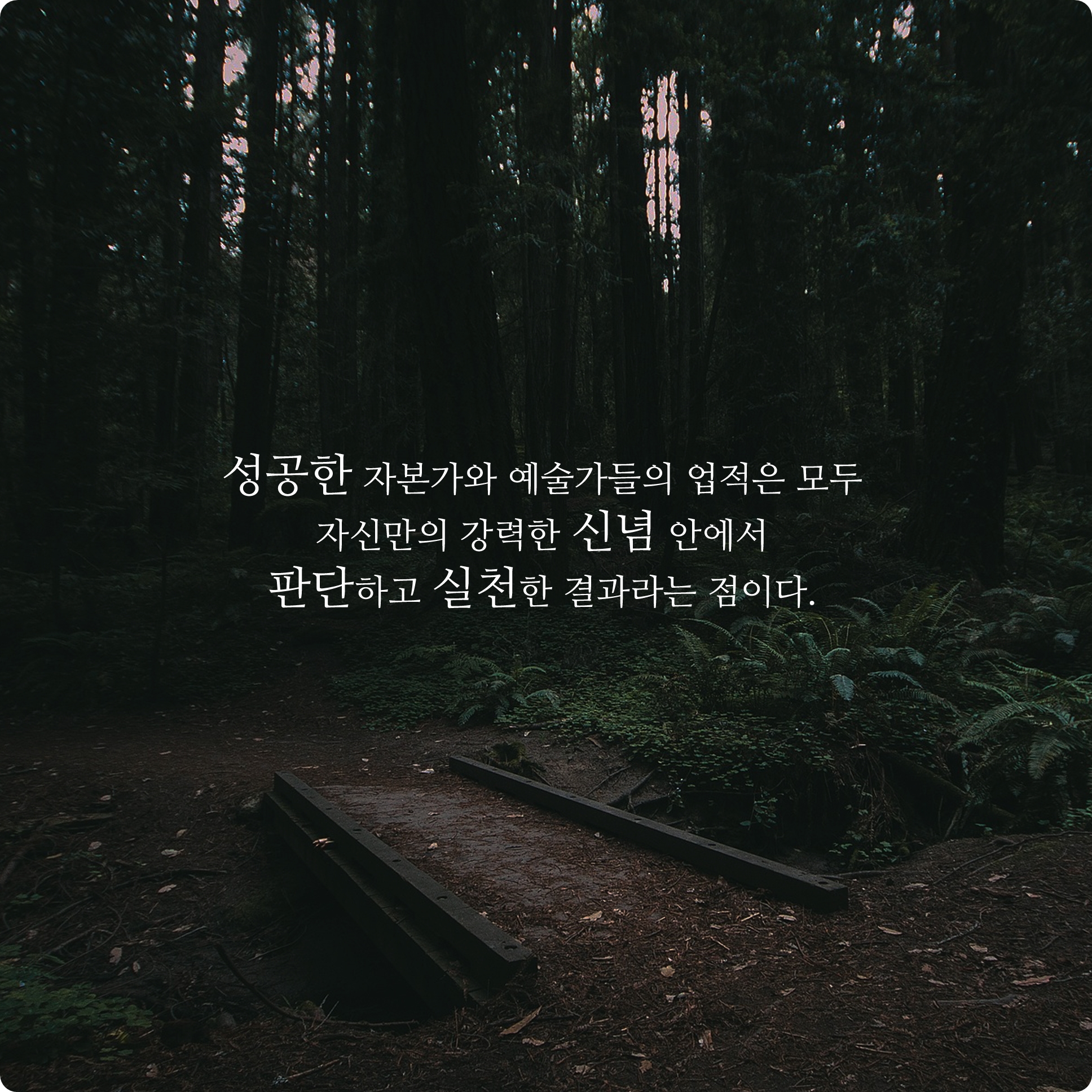 성공한 자본가와 예술가들의 업적은 모두 자신만의 강력한 신념 안에서 판단하고 실천한 결과라는 점이다.