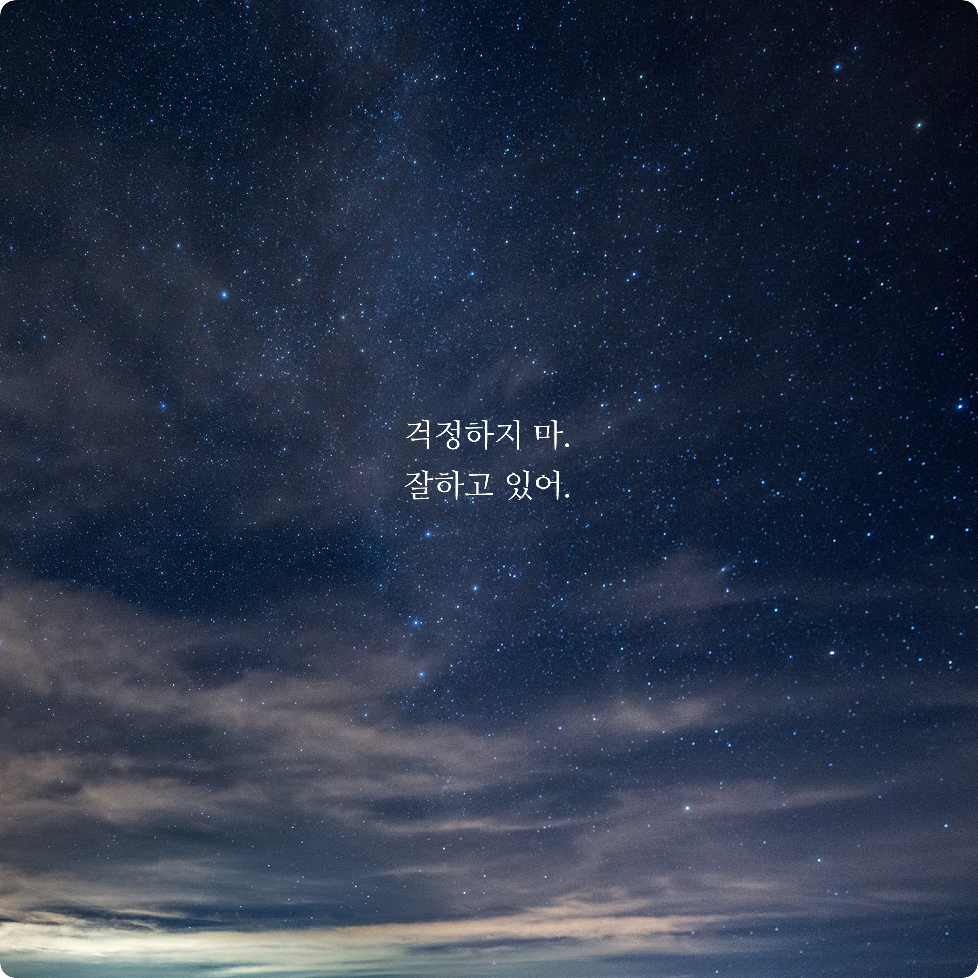 어쩌면 지금 시기에서 내가 가장 듣고 싶은 말, 위로받아야 할 말이 아닌가 싶습니다. 지나친 근심과 걱정은 나에게 그다지 큰 도움이 되질 않습니다. 분명한 것은 지금 현재 조금 힘든 일을 경험했지만 여러분들은 너무나 잘하고 있습니다. 템포와 리듬이 있는 것처럼 단지 지금 이 시기는 하나의 흘러가는 작은 시기와 감정일 뿐이죠. 지금 위로 받고 싶다면 제가 꼭 껴앉아 드릴께요. 너무 잘하고 계십니다.