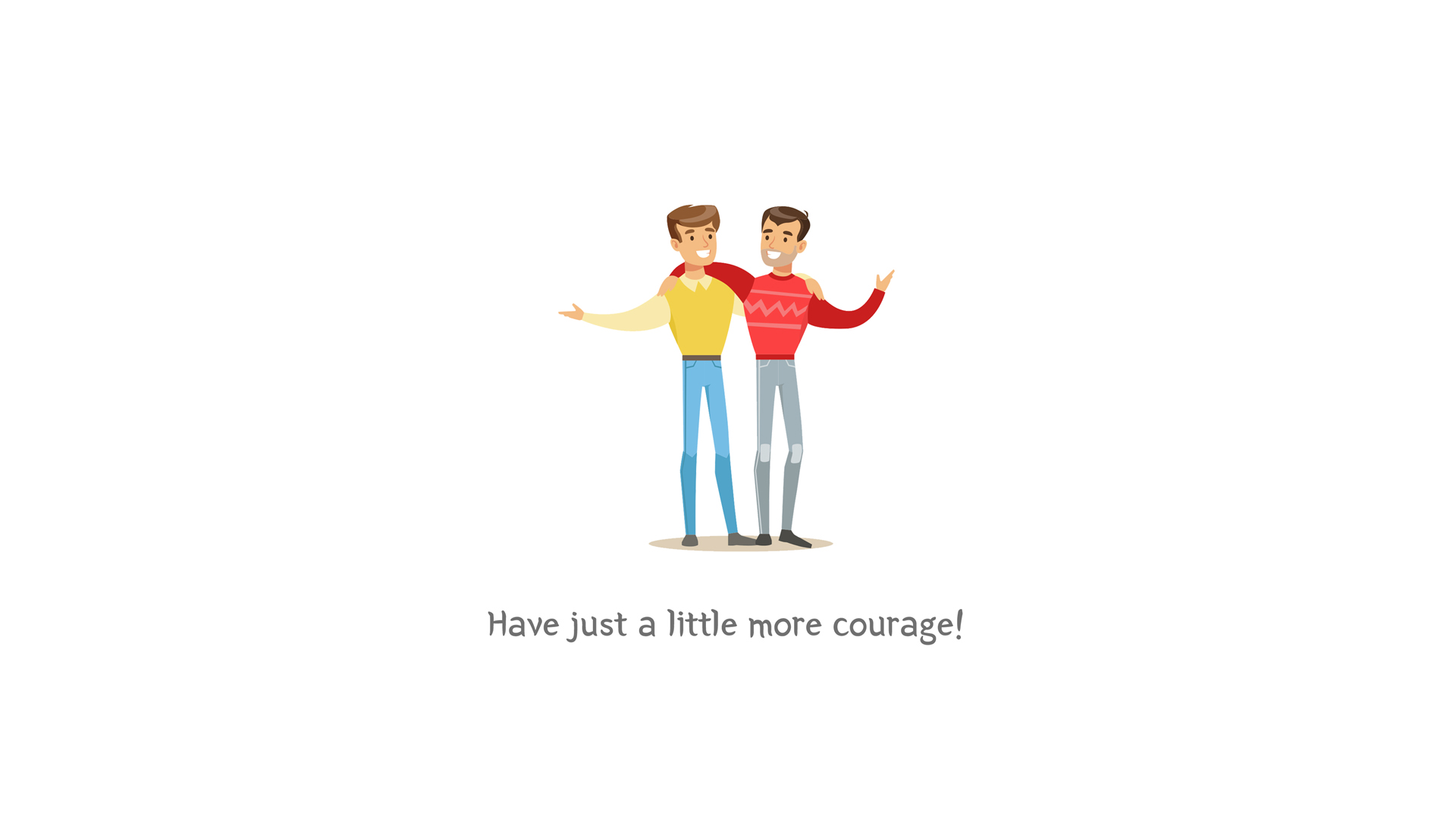 '약간 더 용기를 가져봐.'의 의미로 쓰이는 'Have just a little more courage!'라는 글귀입니다. 남자 둘이 어깨동무를 하며 서 있는 모습의 느낌이 참 좋네요.