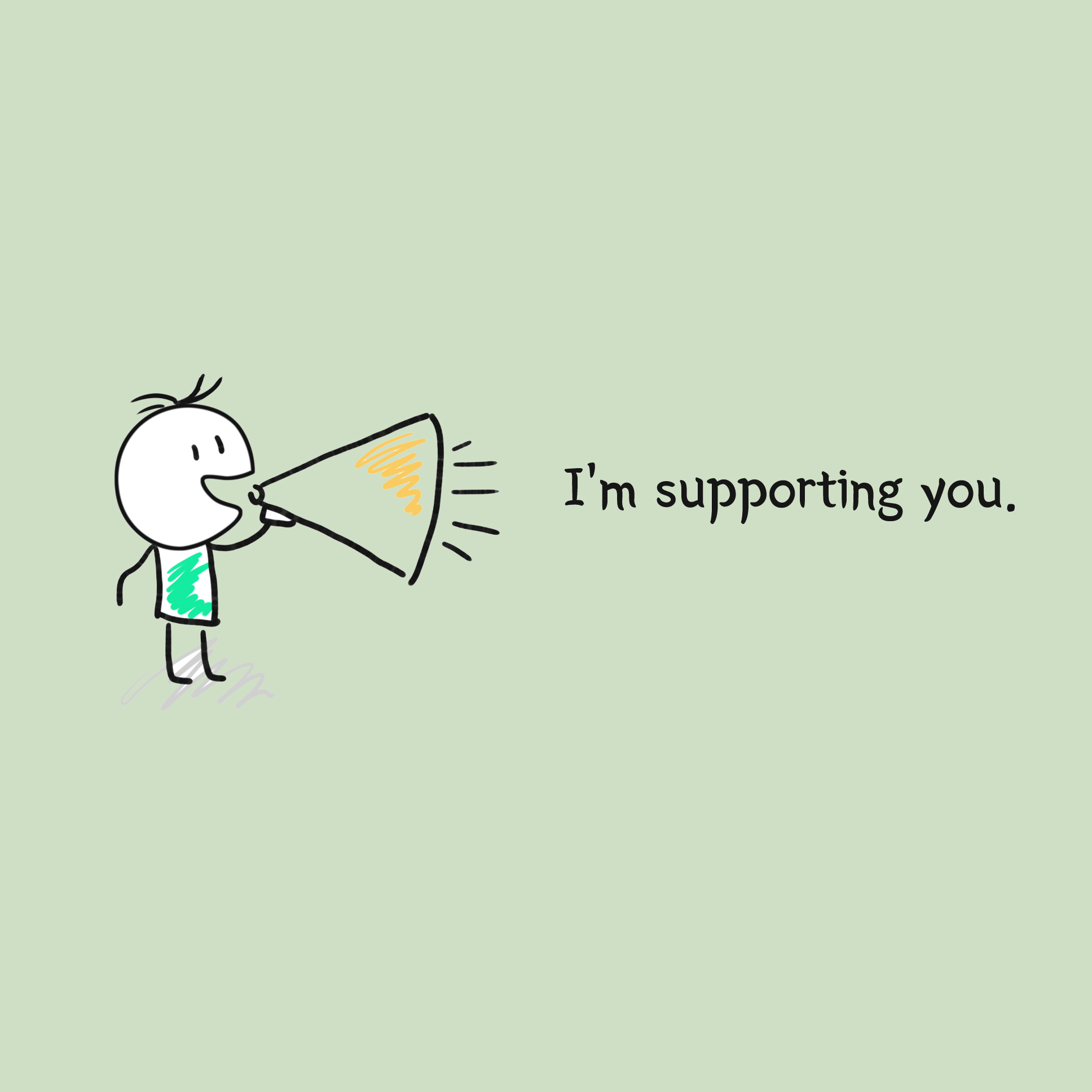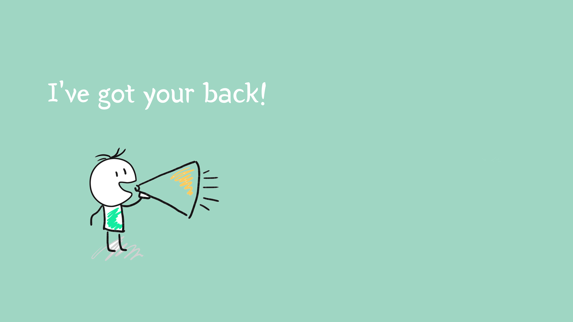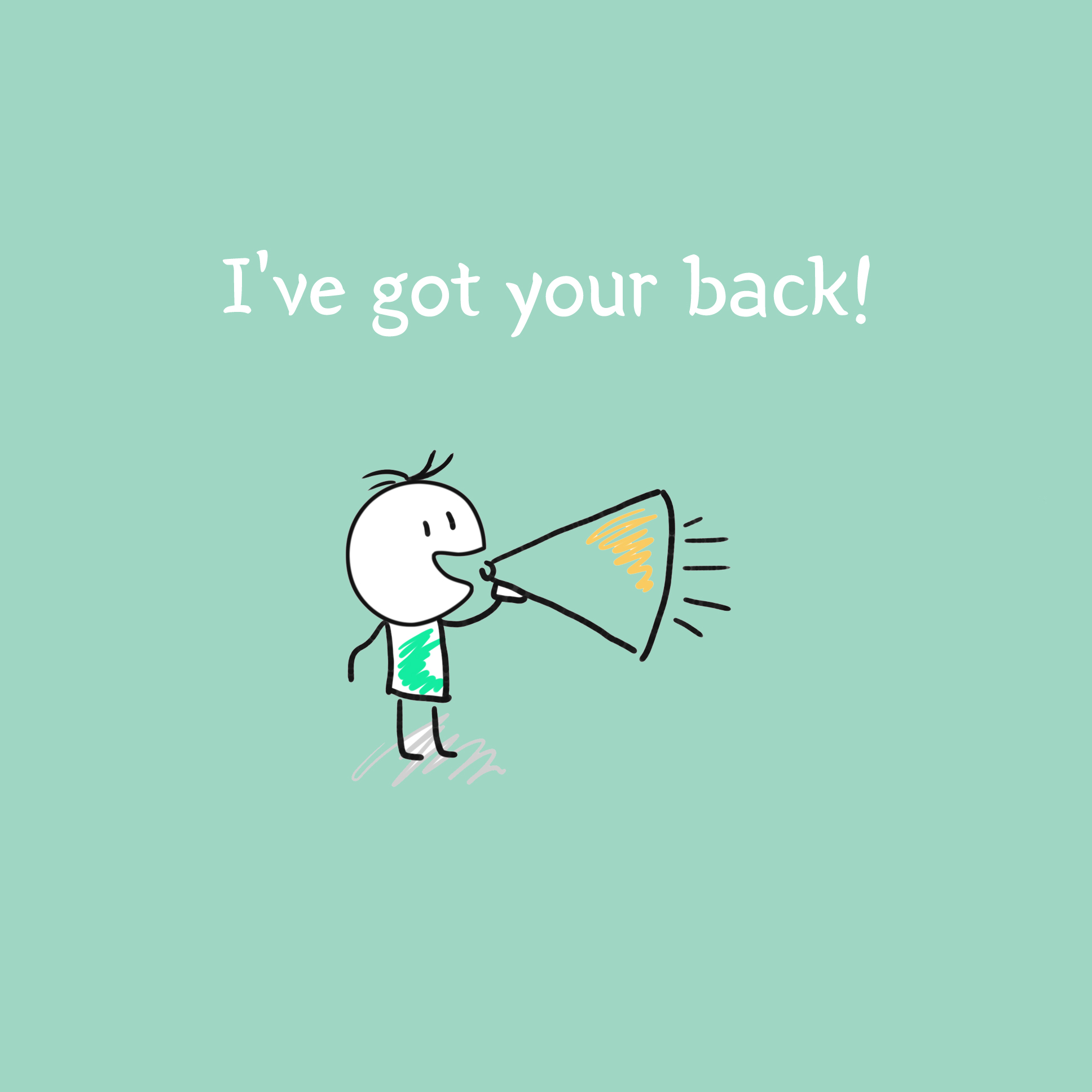'나는 당신을 응원해요!'라는 의미의 'I've got your back!'입니다. 뜻을 하나씩 알아보면서 이미지를 감상하면 느낌을 조금 더 기억할 수 있기 때문에 머릿속으로도 잘 들어오는 것 같네요.