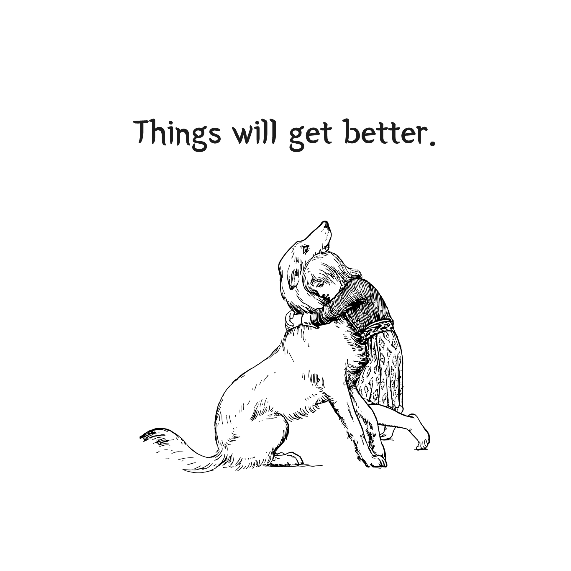 'Things will get better.'의 문장은 '다 괜찮아질 거야.'라는 뜻입니다. 모든 상황이나 환경은 나 스스로 극복을 잘 한다면 조금씩 달라질 것이고 더 나아질 것이랍니다. 소녀가 커다란 개를 안고 있는 빈티지한 감성 이미지가 참 예쁘네요.