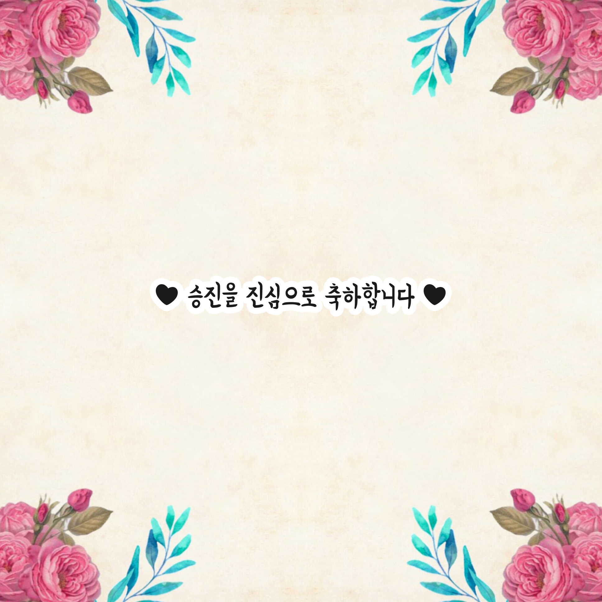 00야. 이번에 00로 승진한 거 진짜 축하한다. 지금처럼만 하면 앞으로도 쭉쭉~ 승승장구할 거야. 열심히 일하는 모습은 보기 좋지만 이번에 승진도 했으니까 건강도 신경 쓰고~ 늘 화이팅 해라.