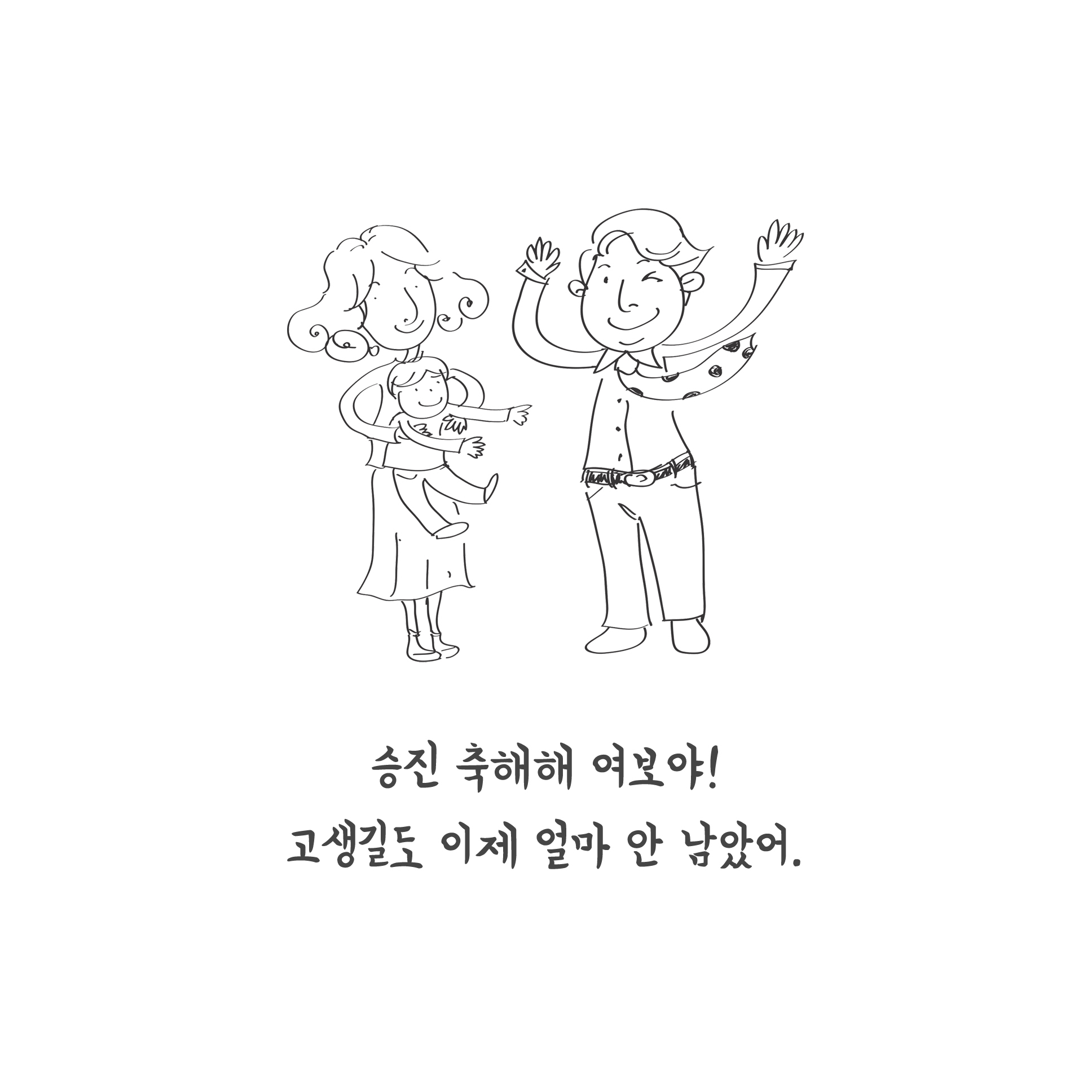 여보 이번에 승진한 거 진짜 고생 많았어. 이제는 큰일 해내는 우리 여보 위해서 내가 집에서도 기 많이 살려줄게. 여보 일 열심히 해서 나도 꼭 잘나가는 여사님 시켜줘. 알았지? 사랑해 여보!