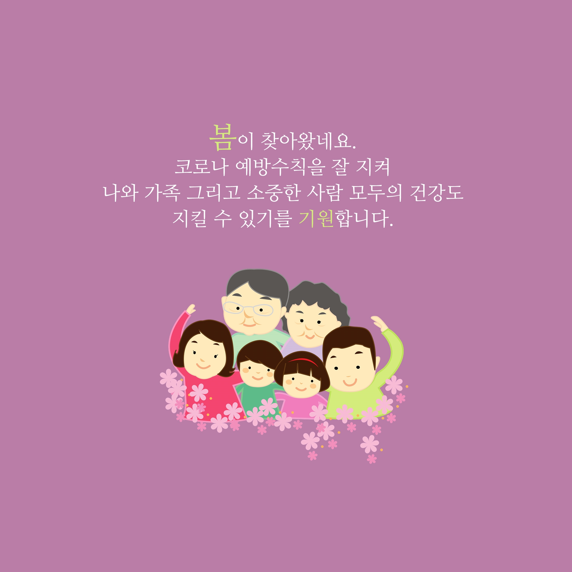 봄이 찾아왔네요. 코로나 예방수칙을 잘 지켜 나와 가족 그리고 소중한 사람 모두의 건강도 지킬 수 있기를 기원합니다.