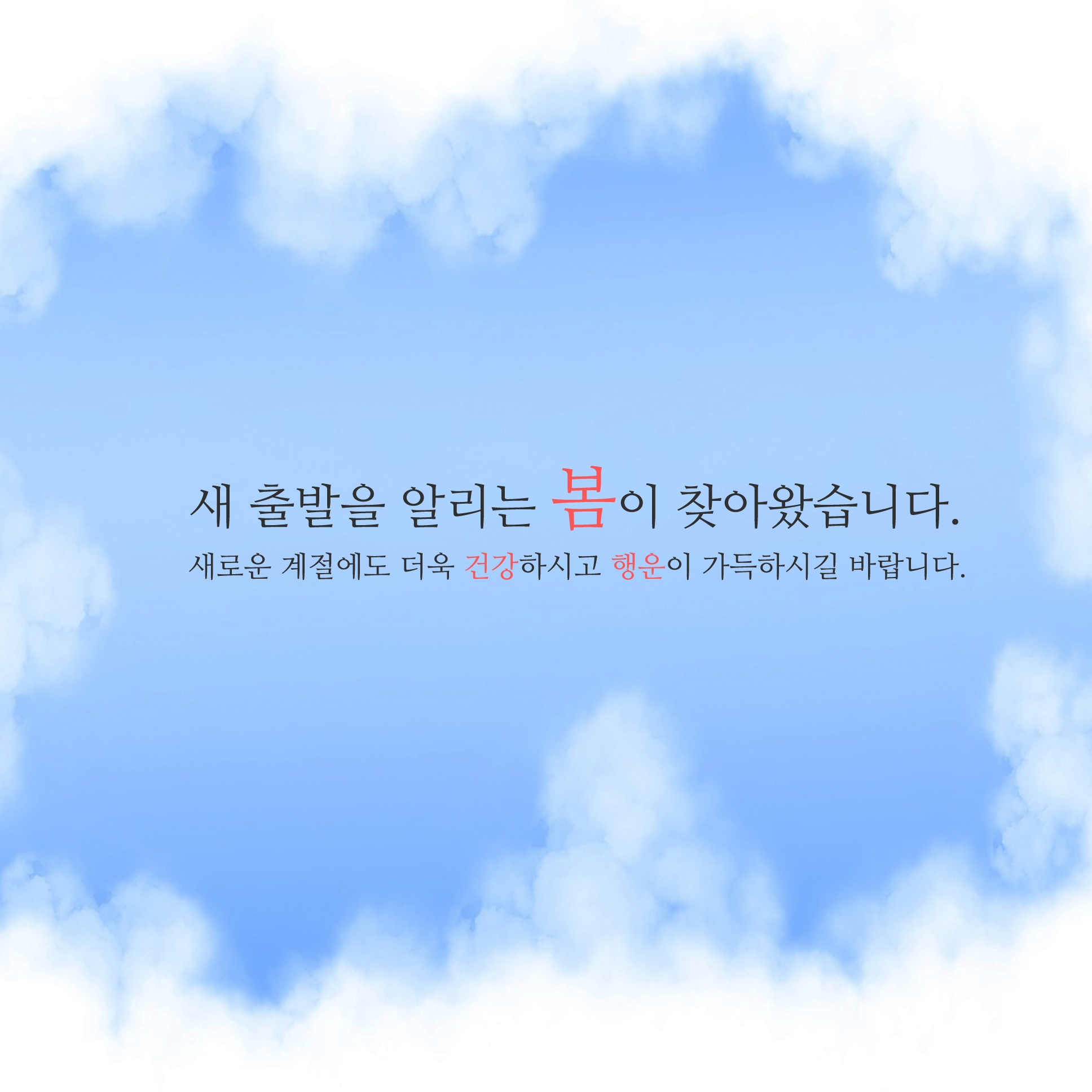 새 출발을 알리는 봄이 찾아왔습니다. 새로운 계절에도 더욱 건강하시고 행운이 가득하시길 바랍니다.