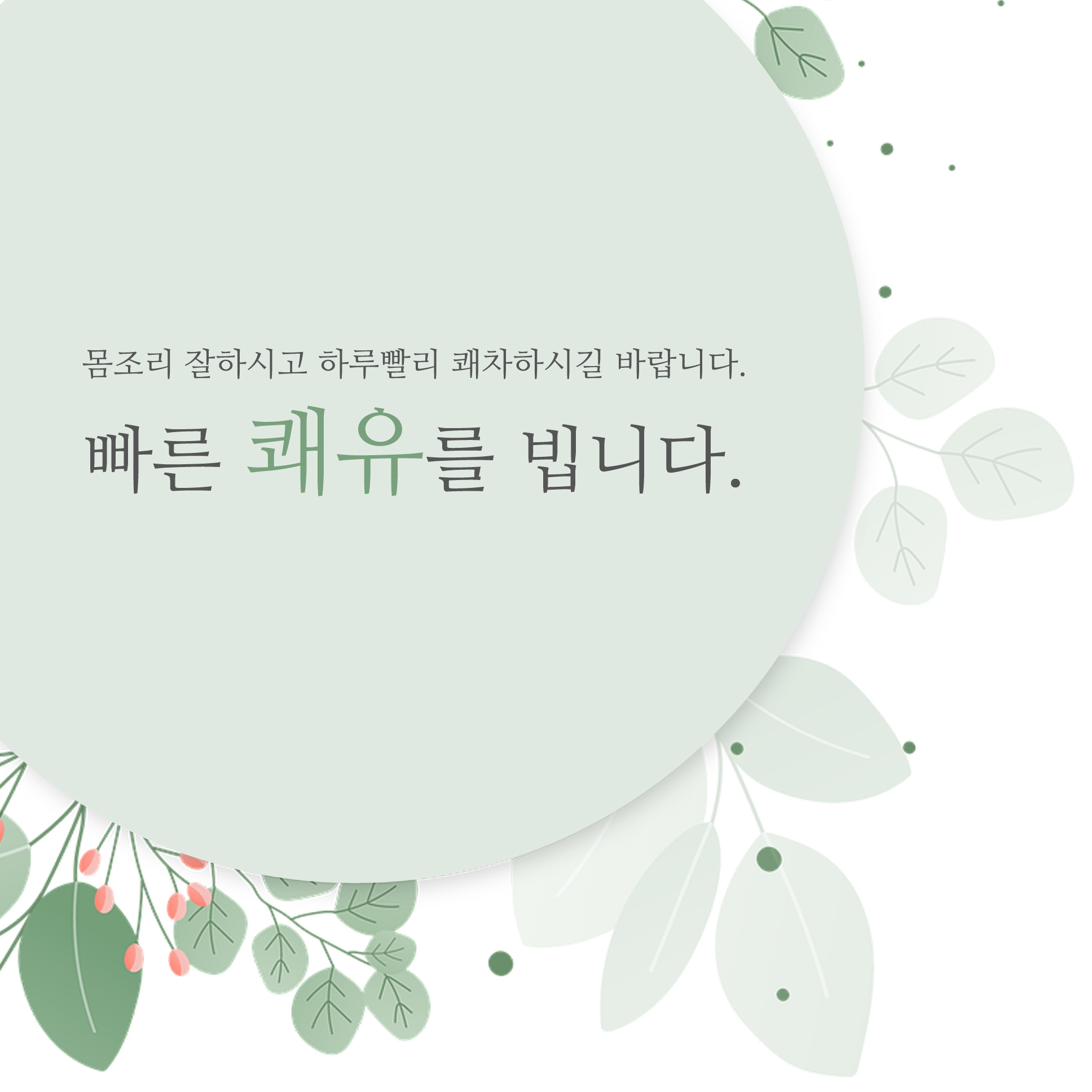 - 몸조리 잘 하시고 다시 건강한 모습으로 뵙겠습니다.