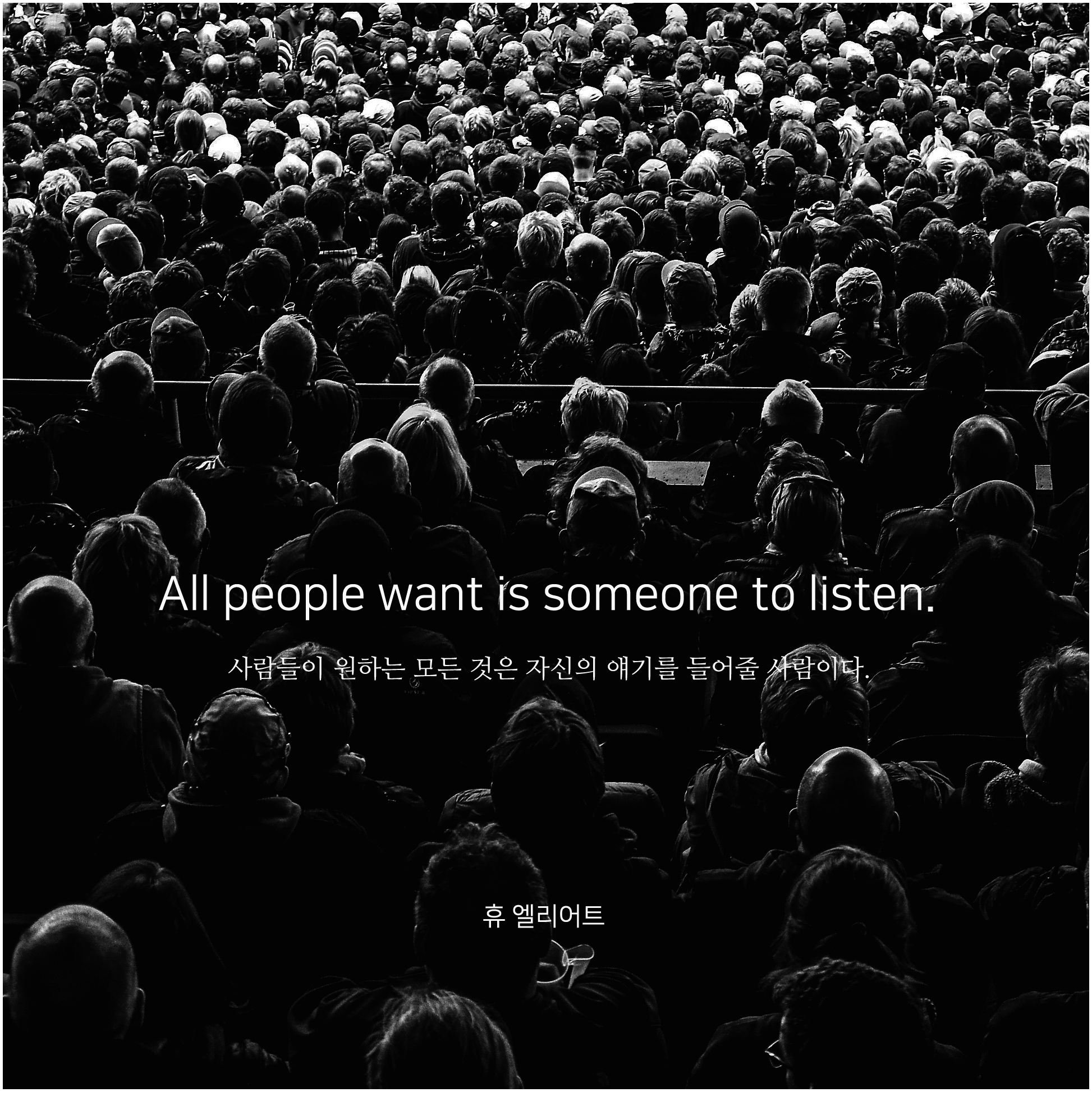 때로는 인간관계에 대해서 말한 것일수도 있고 정치, 경제, 사회의 관점에서 얘기한 말일수도 있고 인간관계에 대해서 말하고 있는 명언일수도 있는데요. 사람들이 원하는 것은 자신의 얘기를 들어줄 수 있는 사람이라고 얘기를 한 문장입니다.