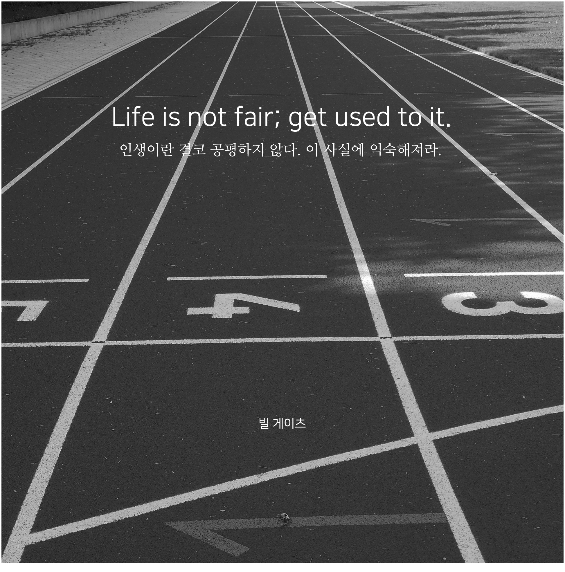 공정하지 않은 인생. 그것은 사실이며 그런 사실들을 잘 알고 익숙해져야 한다. 출발선이 남들보다 조금 늦으면 출발선부터가 다르다고 자신의 신세를 한탄할 것인가요? 이미 시작점은 다 달라요. 다만 그런 차이들을 내가 어떻게 이겨내느냐가 중요한 것이죠.