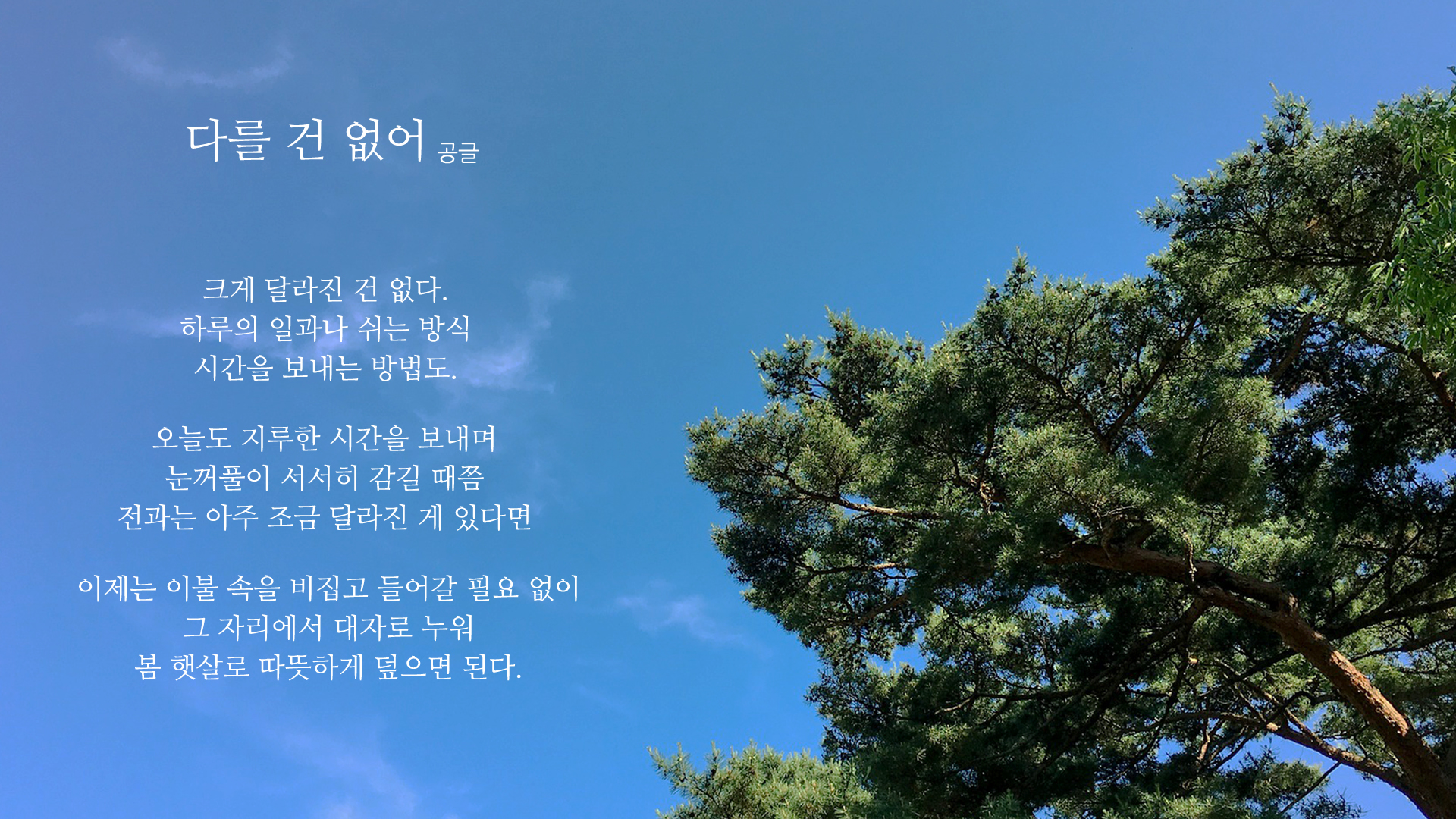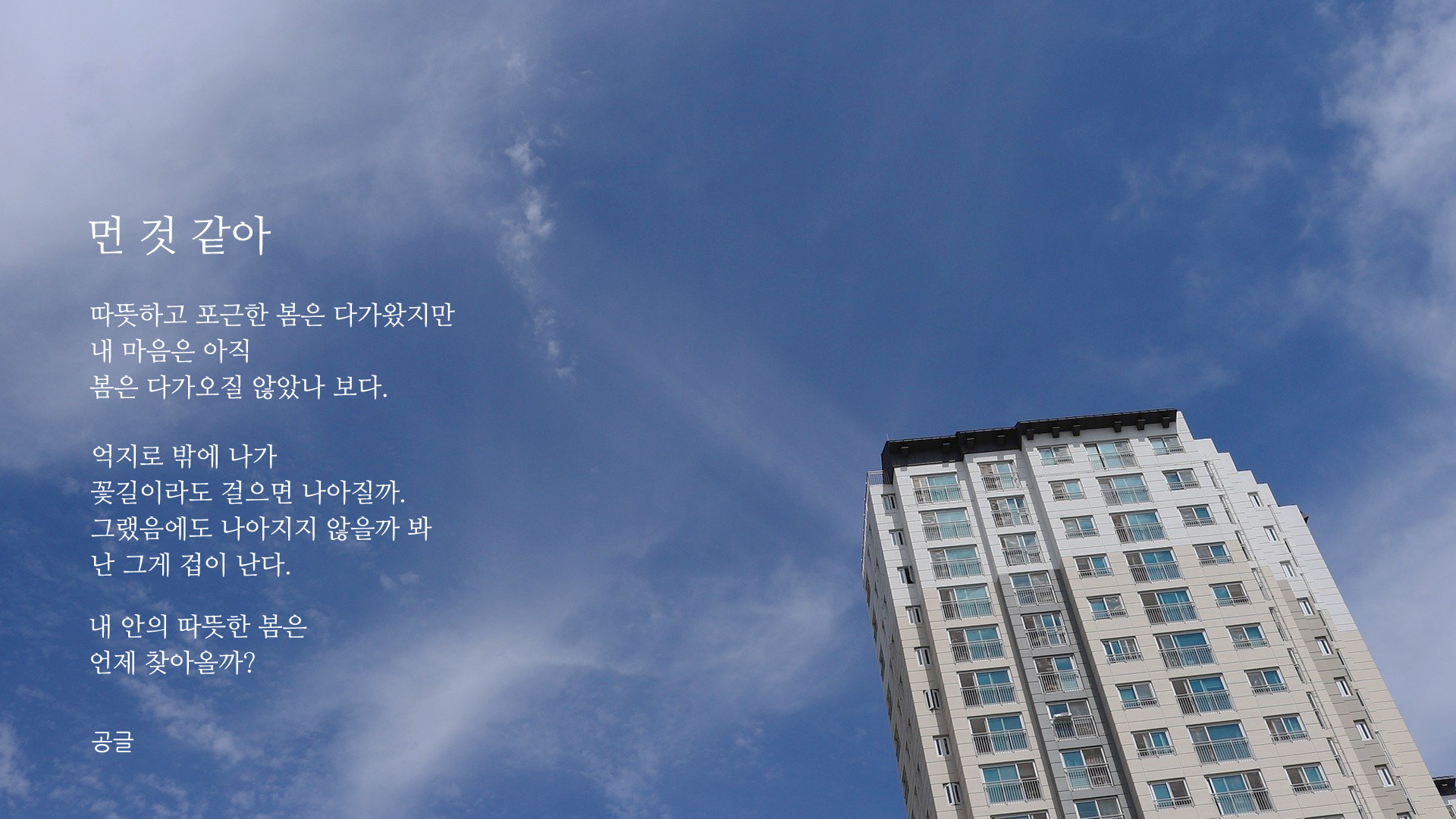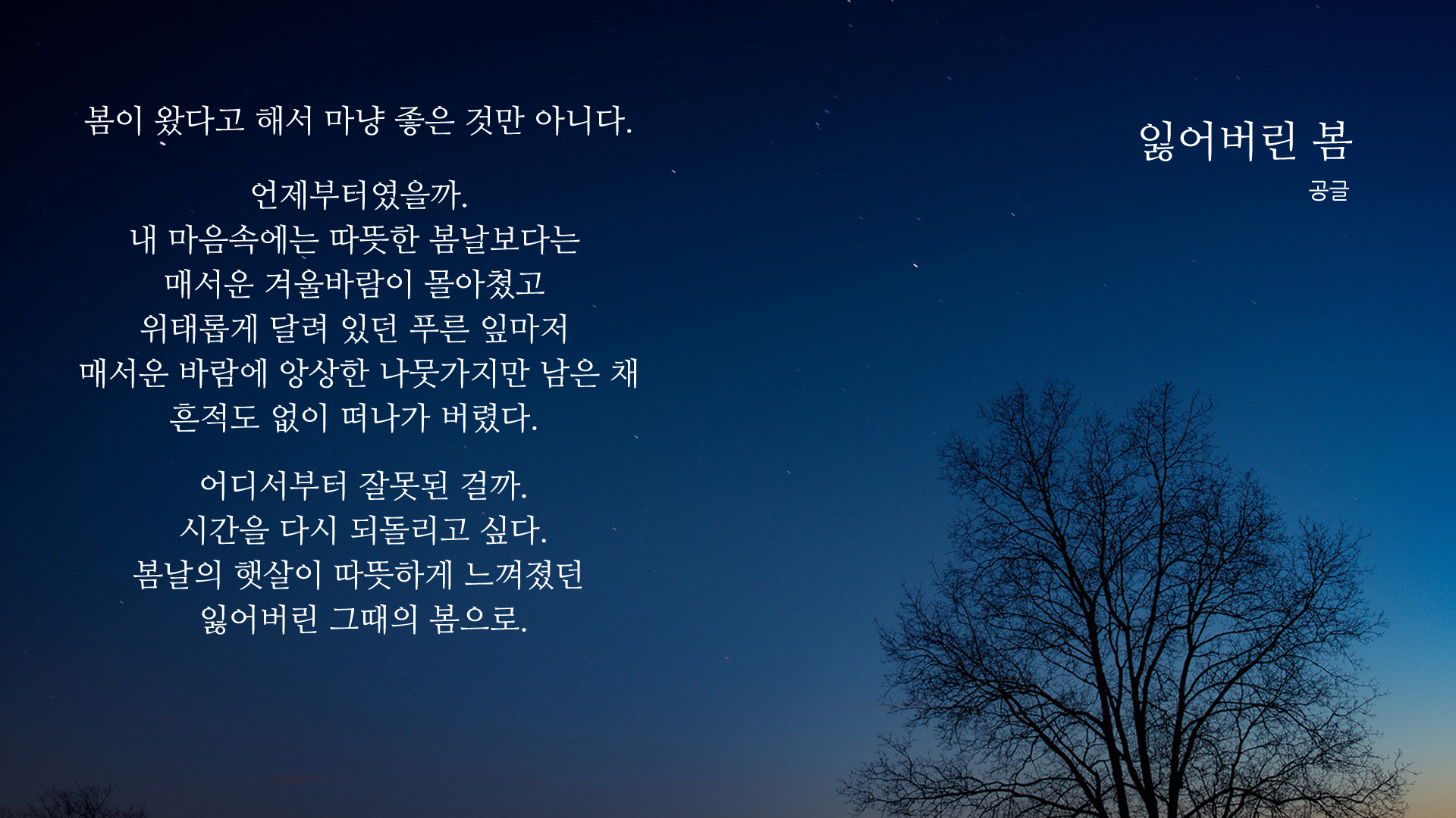 봄에 대한 시 배경화면(바탕화면 크기 1920 x 1080) 사이즈 입니다.